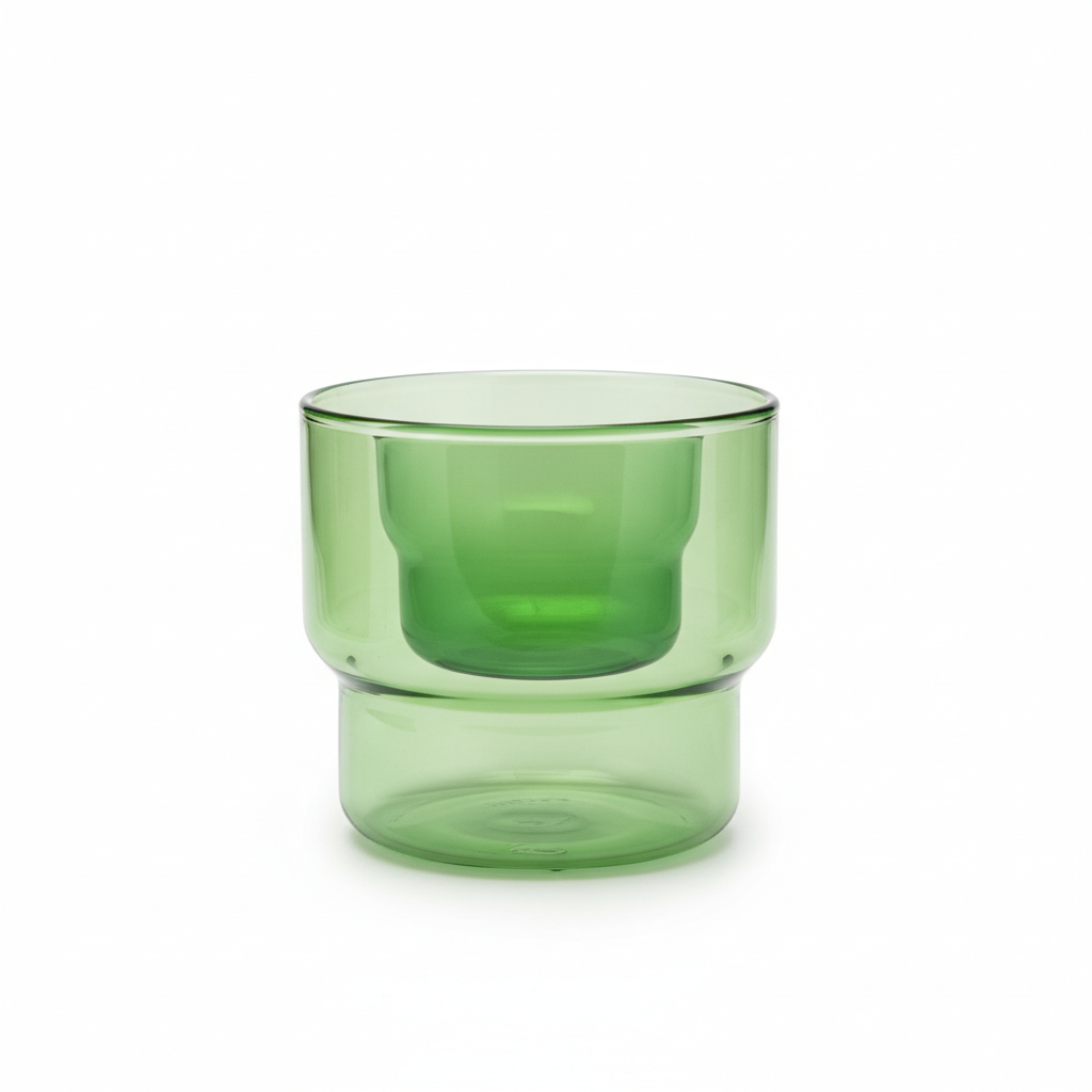 Xham me ngjyrë jeshile, i tejdukshëm dhe me formë moderne cilindrike, i përshtatshëm për servirjen e pijeve në përditshmëri apo në raste të veçanta.