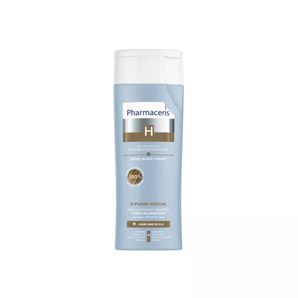 H-Purin Special Shampo për larjen dhe kujdesin e skalpit të kokës me simptomat e zbokthit të etiologjive të ndryshme , duke përfshirë zbokthin e thatë dhe të yndyrshëm , kruajtjen , acarimin dhe rrëshqitjen e lëkurës. Formula Scalpshield rikthen dhe ruan ekuilibrin e mikrobiomës së duhur dhe pH-në e duhur të kokës. Falë vetive antibakteriale dhe antifungale të Octopirox® dhe Ciclopirox Olamine , ai kufizon zhvillimin e mikroorganizmave përgjegjës për zhvillimin e zbokthit dhe redukton seborrenë , duke parandaluar yndyrën e flokëve. Alantoina dhe aloe qetësojnë irritimet , skuqjen dhe kruajtjen e lëkurës.