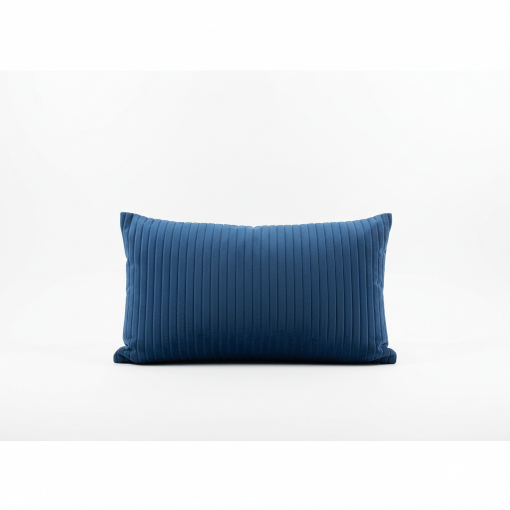 Jastëku dekorativ blu me teksturë me pala sjell elegancë dhe rehati në çdo ambient. Ideale për ta vendosur mbi divan ose shtrat, duke shtuar një prekje moderne në hapësirën tuaj.