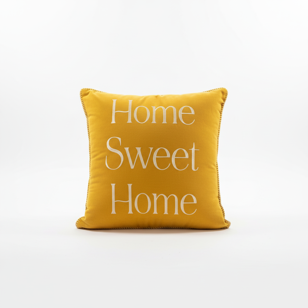Jastëku dekorativ katror me ngjyrë mustard sjell ngrohtësi dhe stil në çdo ambient, me mbishkrimin elegant "Home Sweet Home" të qëndisur në pjesën e përparme. I përshtatshëm si aksesor dekorativ si për divan ashtu edhe për krevat.