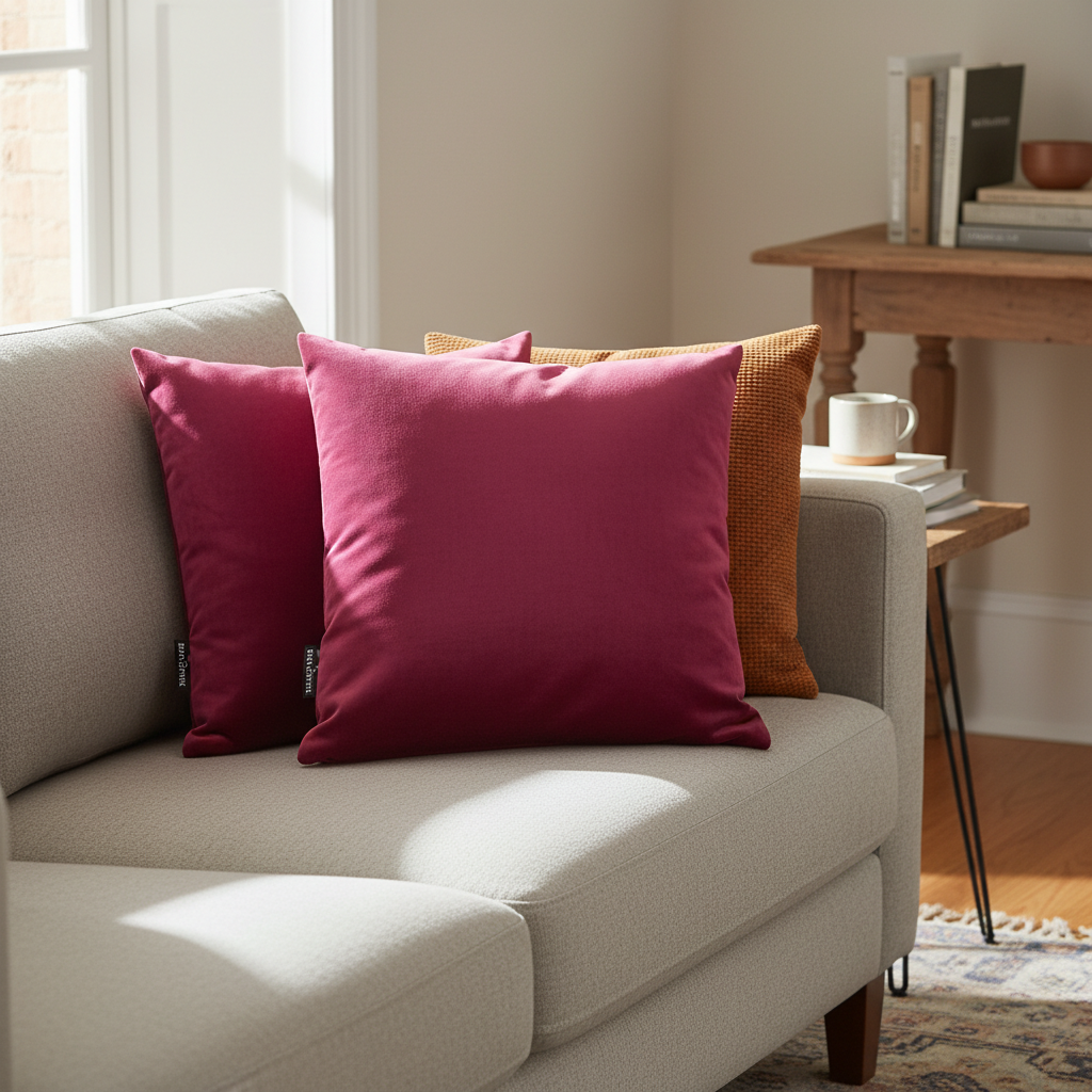 Jasteku dekorativ kadife rozë 45x45 cm sjell ngjyrë të gjallë dhe prekje të butë në çdo ambient. Ideal për divan, kolltuk ose shtrat për të krijuar një pamje moderne dhe të ngrohtë.