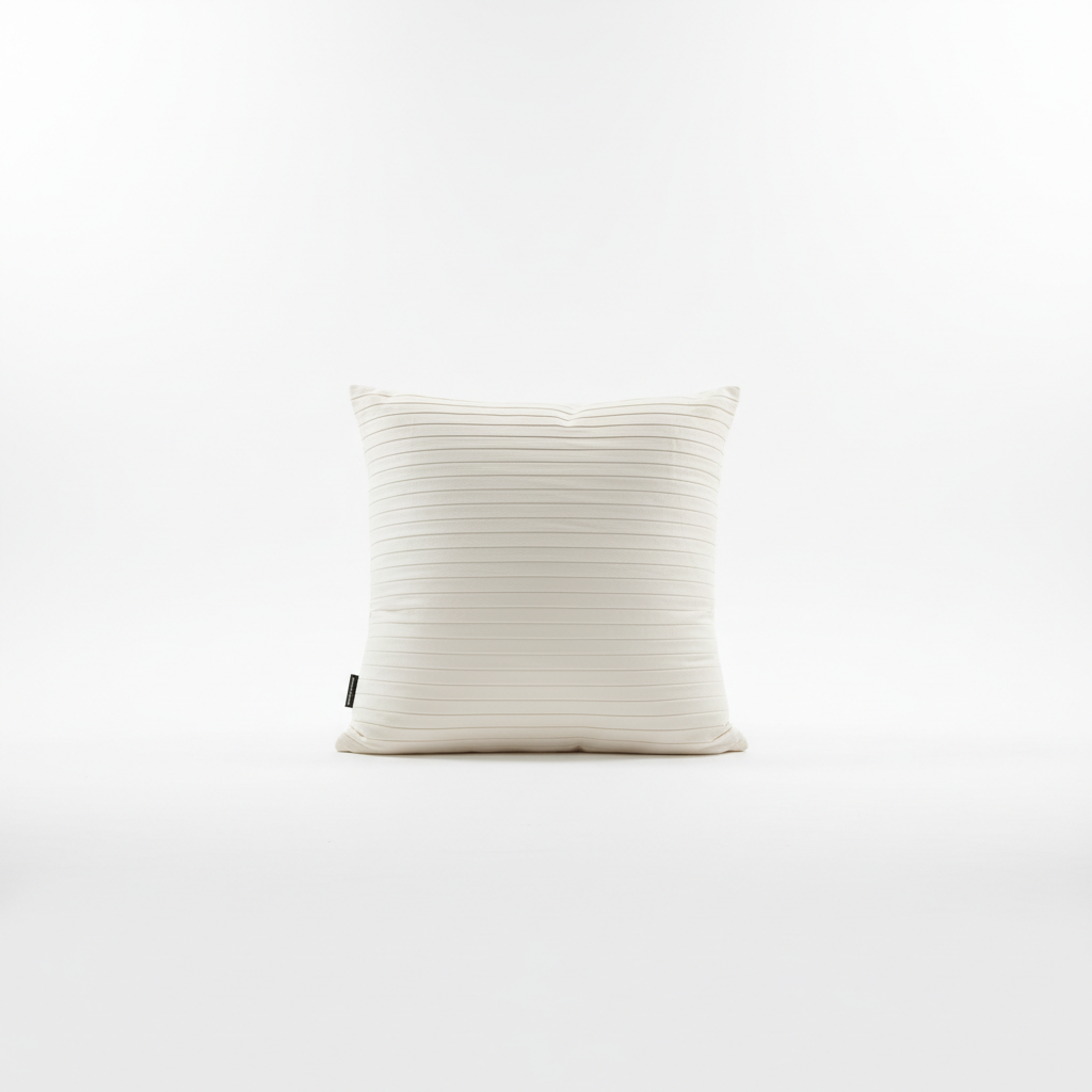 Jastëku dekorativ katror nga Danny Home Collection sjell një prekje delikate elegance me ngjyrën e çelur dhe teksturën me vija horizontale, i përshtatshëm si për divan ashtu edhe për shtrat.