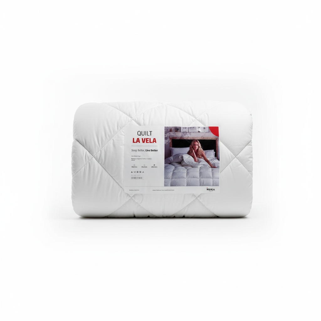 Quilt La Vela 140x215 është jorgan me pëlhurë mikrofiber dhe mbushje poliestër, ideal për shtratin tuaj të përditshëm. Ndërtimi i qepur siguron që mbushja të qëndrojë e shpërndarë në mënyrë të njëtrajtshme.