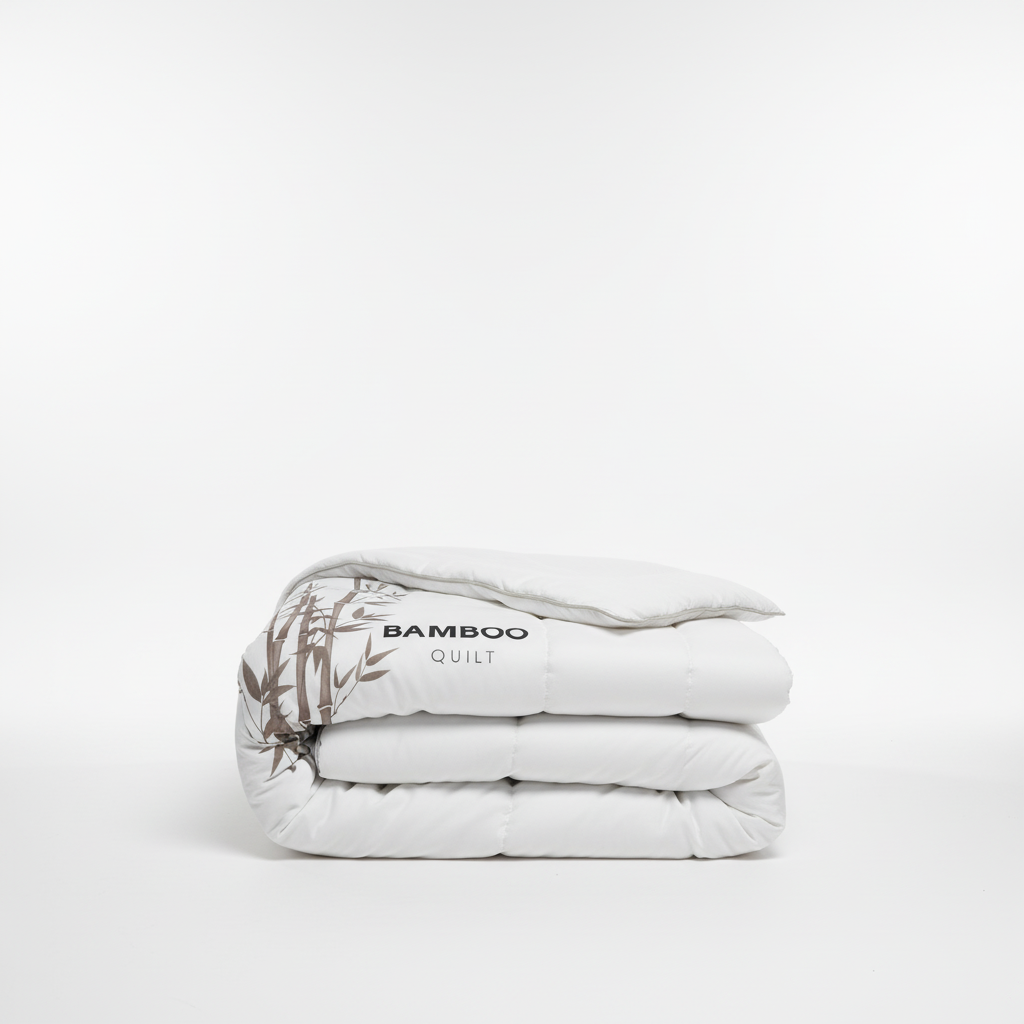 Jorgani Bamboo Quilt 140x220 është jorgan i butë dhe i lehtë me mbushje nga fibra organike bambuje, që ofron tharje të shpejtë të lagështisë dhe prekje të ngjashme me mëndafshin dhe kašmirin.