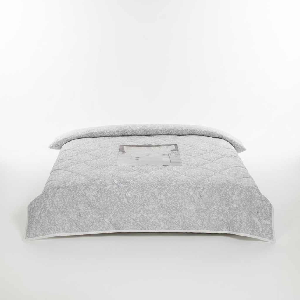 Jorgan veror i lehtë me përmasa 140x220 cm, me ngjyrë të çelët dhe motiv lulesh diskrete, i përshtatshëm për shtratin tuaj. Vjen i paketuar në qese plastike me mbyllje zinxhir dhe dorezë për transport të lehtë.