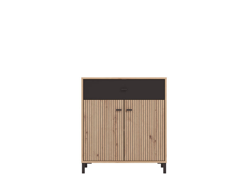 Kabineti Avi kombinon dizajnin modern me elemente natyrale, duke krijuar një mobilie elegante dhe funksionale për ambientin tuaj. Pjesa frontale me linja vertikale në ngjyrë druri krijon një teksturë të ngrohtë dhe moderne, ndërsa pjesa e sipërme në ngjyrë të zezë i jep kontrast dhe karakter minimalist. Ideale për korridor, dhomë ndenjeje apo dhomë gjumi.