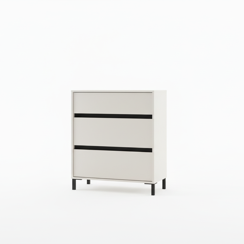 Ky kabinet me dizajn minimalist dhe linja të pastra është zgjidhja ideale për organizimin e rrobave, dokumenteve apo aksesorëve në çdo ambient të shtëpisë. Ngjyra neutrale e kombinuar me detajet horizontale në të zezë krijon një pamje moderne dhe elegante.