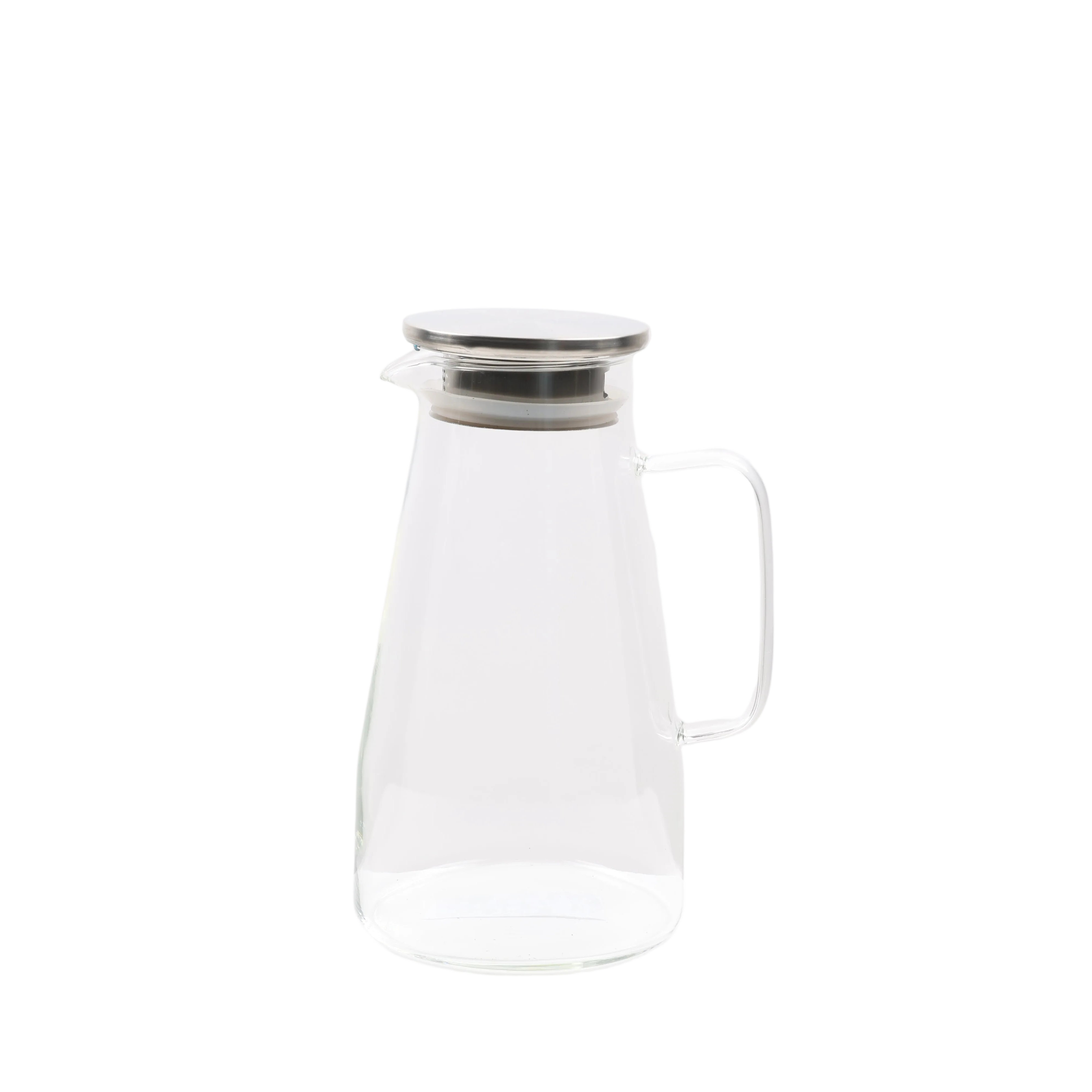 Kanë praktike prej qelqi transparent, ideale për servirjen e ujit, lëngjeve natyrale, çajit të ftohtë apo pijeve të ndryshme. Forma elegante dhe kapaku metalik i japin një stil modern dhe të pastër, të përshtatshëm për çdo ambient.