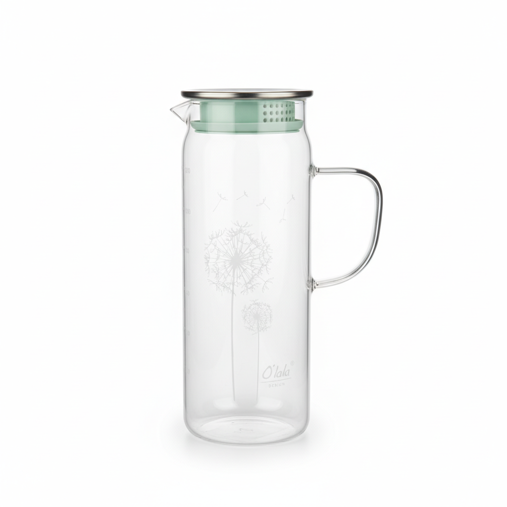 Kjo karafe elegante uji prej qelqi borosilikat ofron rezistencë të lartë ndaj temperaturës dhe një pamje të pastër, transparente. Trupi cilindrik i lartë me dizajn delikat lulesh luleshqerre e bën të përsosur si për përdorim të përditshëm, ashtu edhe për servirje kur keni mysafirë. Doreza e integruar dhe kapaku praktik me vrima kulluese mundësojnë derdhje të kontrolluar pa mbetje frutash apo kubash akulli. Shënimet matëse anësore ju ndihmojnë të matni saktësisht sasinë e ujit, lëngut apo çajit që përgatisni.