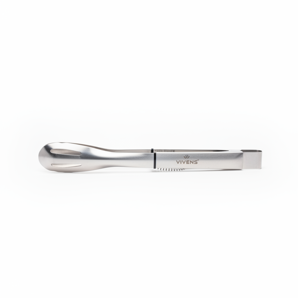 Pinca praktike kuzhine nga çelik inox me cilësi të lartë, ideale për kapjen dhe servimin e ushqimit në çdo përgatitje gatimi.