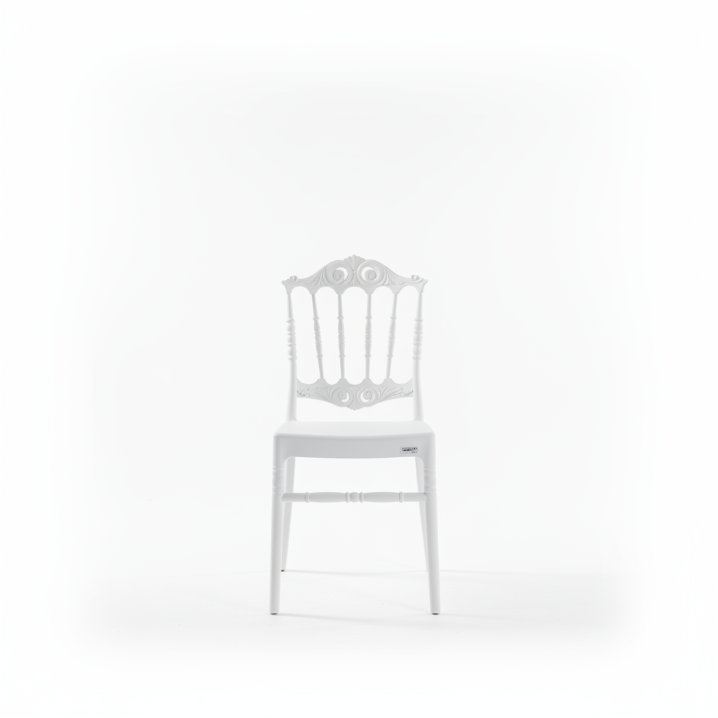 Kjo karrige dasme e bardhë me modelin Lily sjell një pamje elegante dhe dekorative për evente, ceremoni apo ambiente pritjeje. Dizajni klasik me detaje të gdhendura në shpinore e bën ideale si pjesë kryesore të dekorit.