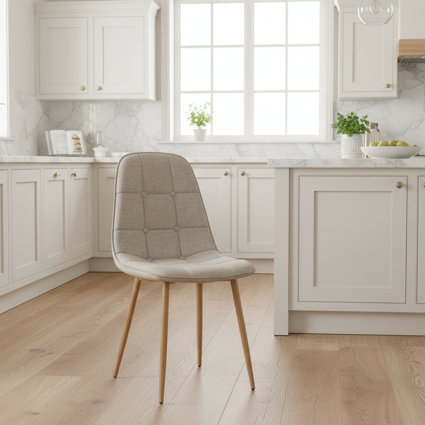 Materiali i butë me detaje dekorative i jep një pamje moderne dhe të rafinuar, ndërsa forma e saj e pastër e bën të lehtë për t’u kombinuar me tavolina dhe stile të ndryshme interior.