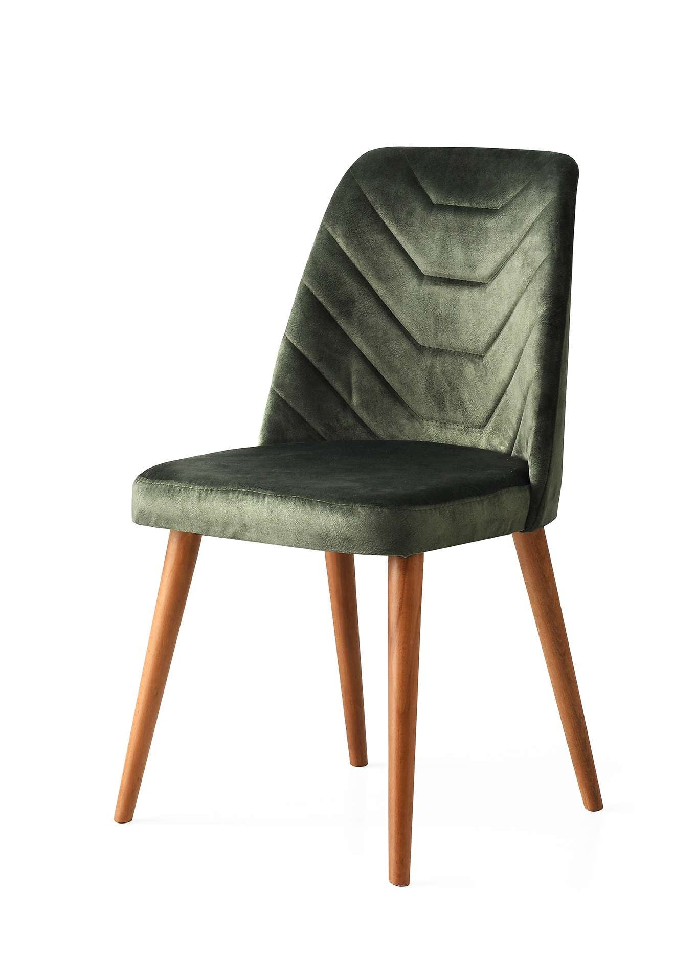 Karrige elegante me tapiceri në ngjyrë jeshile të errët, që sjell një ndjesi luksi dhe ngrohtësie në çdo ambient. Dizajni modern me qepje dekorative në formë gjeometrike i jep karakter unik, ndërsa sedilja e butë siguron rehati gjatë përdorimit të përditshëm.