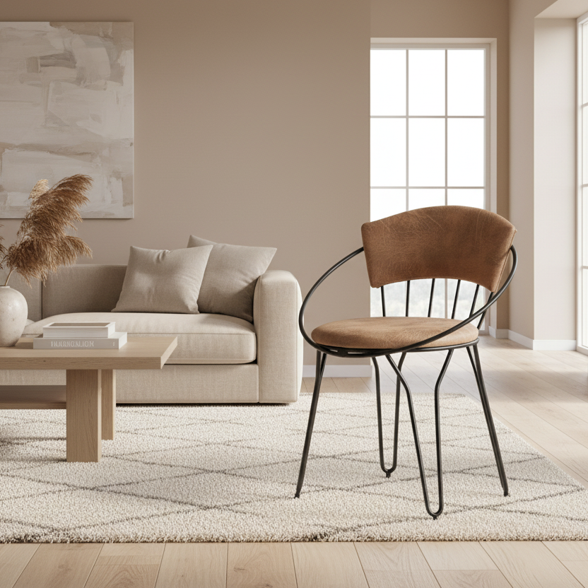 Karrige Izmir në ngjyrë kafe është një kombinim perfekt mes stilit industrial dhe rehatisë moderne. Me dizajn të hapur dhe linja të pastra, kjo karrige sjell një pamje unike dhe karakteristike që i jep ambientit një identitet të veçantë.