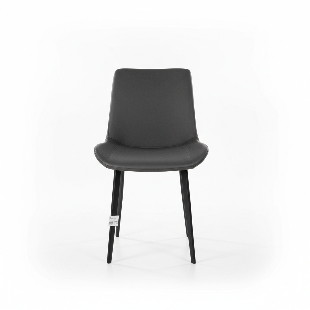 Kjo karrige elegante e veshur me lëkurë gri ofron komoditet dhe stil modern minimalist për çdo ambient shtëpie apo zyre. Dizajni i thjeshtë me këmbë metalike e bën të lehtë për ta kombinuar me mobiljet ekzistuese.