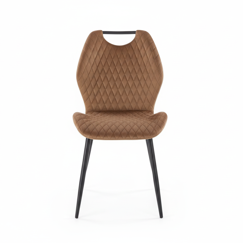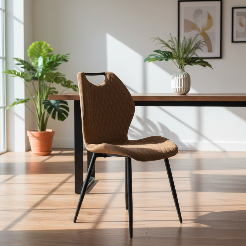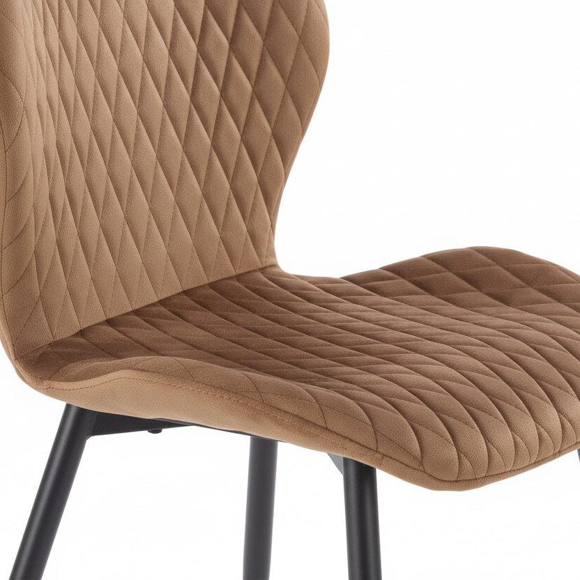 Tapiceria me teksturë të butë dhe qepje dekorative i jep një pamje luksoze dhe të rafinuar, duke e bërë të përshtatshme si për tavolina ngrënieje, ashtu edhe për ambiente zyre apo dhoma pritjeje. Ngjyra bezhë është neutrale dhe e lehtë për t’u kombinuar me stile të ndryshme interieri.
