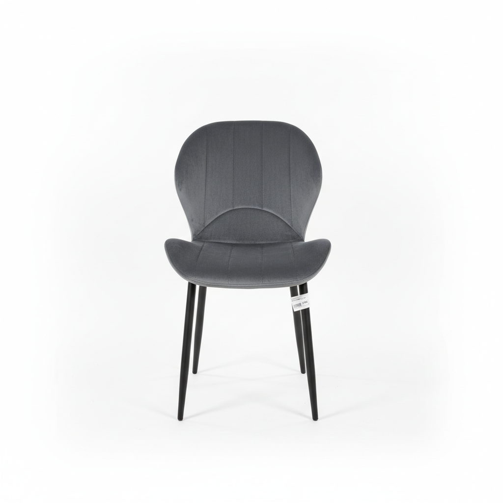Kjo karrige gri e tapicuar ofron rehati dhe stil modern për çdo ambient ngrënieje ose pune. Dizajni i harkuar i shpinës dhe linjat vertikale i japin një pamje elegante dhe bashkëkohore.