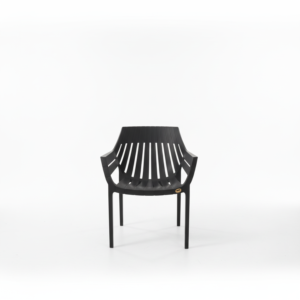 Kjo karrige plastike outdoor në ngjyrë të zezë ofron ulje të rehatshme dhe funksionale për oborrin, kopshtin apo ballkonin tuaj. Dizajni me shufra dhe krahët e integruar e bën të përshtatshme për përdorim të përditshëm në ambient të jashtëm.