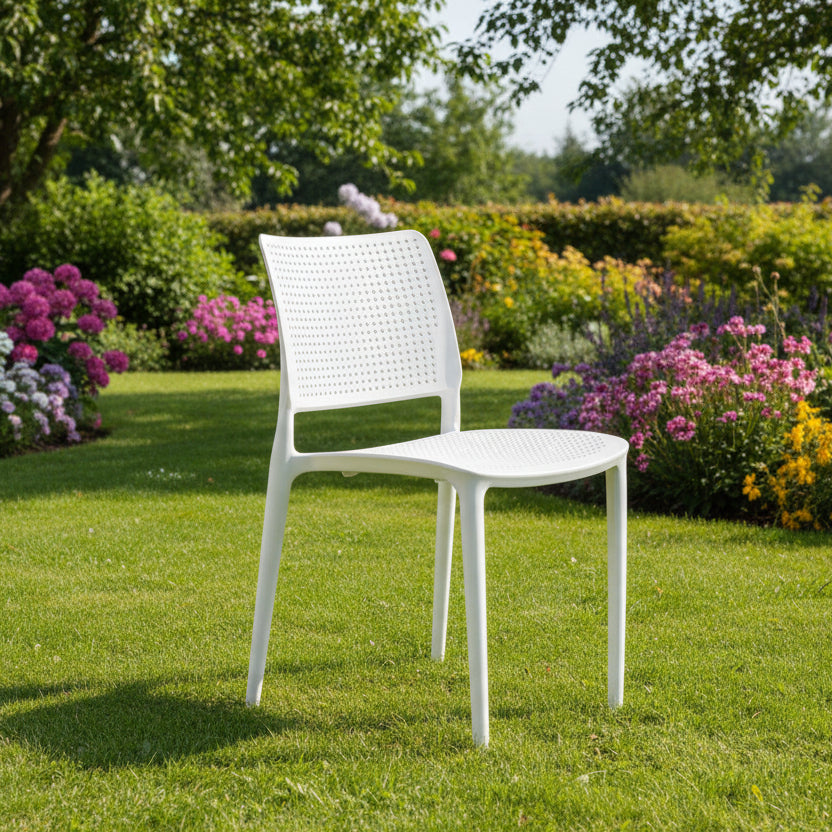 Karrige outdoor Lodi white ergonomike për ambiente të brendshme dhe të jashtme