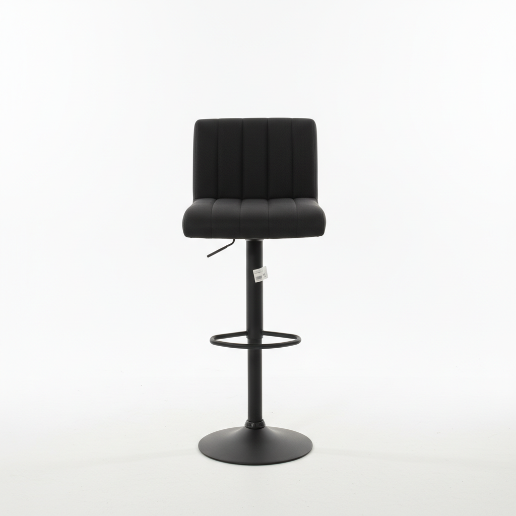 Karrigia moderne e barit ofron ulje të lartë dhe komode me sedilje të tapicuar dhe dizajn rrotullues, ideale për banakë kuzhine ose bare shtëpie. Kombinimi i stofit të errët me bazën metalike i jep një pamje elegante dhe funksionale.