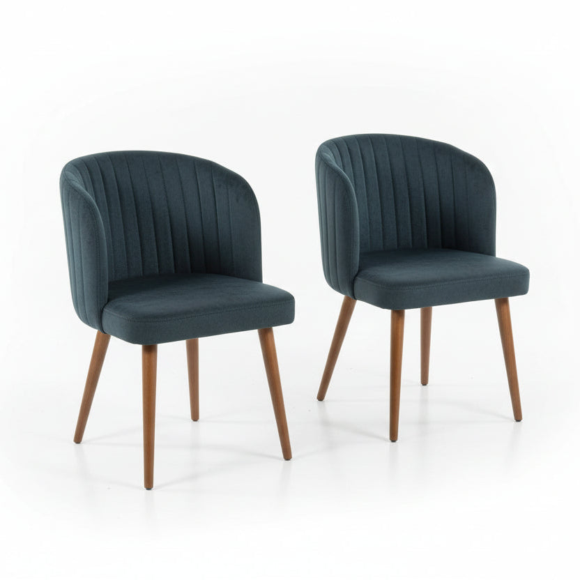 E veshur me një pëlhurë cilësore me efekt kamoshi/nubuck në ngjyrë të errët (blu e thellë/gri antracit), karrigia Zen shton një notë misteri dhe sofistikimi në ambient. Detaji i qepjeve vertikale në pjesën e jashtme të mbështetëses është elementi "chic" që e bën atë të duket bukur nga çdo kënd.