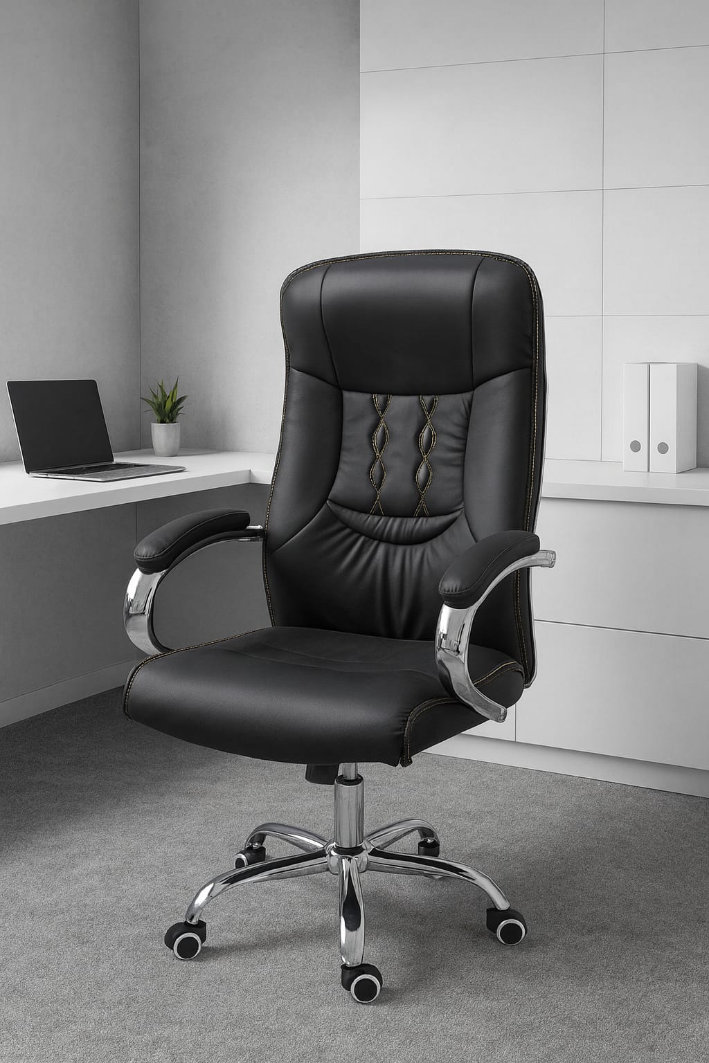Karrige ekzekutive të dizajnuara për rehati maksimale dhe mbështetje gjatë orëve të gjata të punës. Me përmasa elegante dhe veçori mbresëlënëse, ato janë ideale për çdo ambient profesional. Të punuara me shumë kujdes, ofrojnë eksperiencë luksoze uljeje falë mbështetëseve të buta PU.