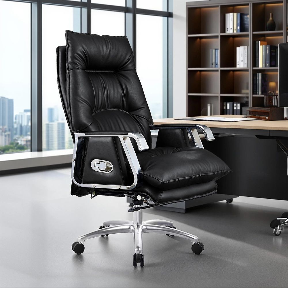 Kjo karrige ekzekutive me shpinë të lartë është projektuar për komoditet, stabilitet dhe një pamje profesionale në çdo ambient pune. Sedilja dhe mbështetësja janë të mbuluara me PU të butë dhe të mbushura me shkumë me densitet të lartë, duke garantuar rehati të vazhdueshme gjatë orëve të gjata të punës. Krahët janë prej kromi me armpad PU për mbështetje të qëndrueshme dhe të rehatshme.