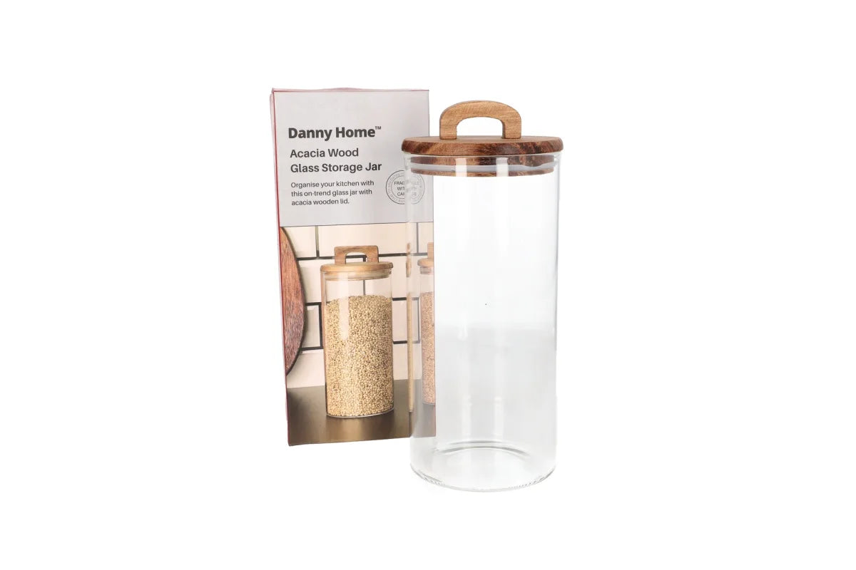 Ky kavanoz është ideal për ruajtjen e produkteve të ndryshme të kuzhinës dhe artikujve të thatë si arra, drithëra, kokoshka apo fruta të thata. I prodhuar nga qelq borosilikat cilësor, me kapak prej druri acacia dhe unazë silikoni me mbyllje hermetike.