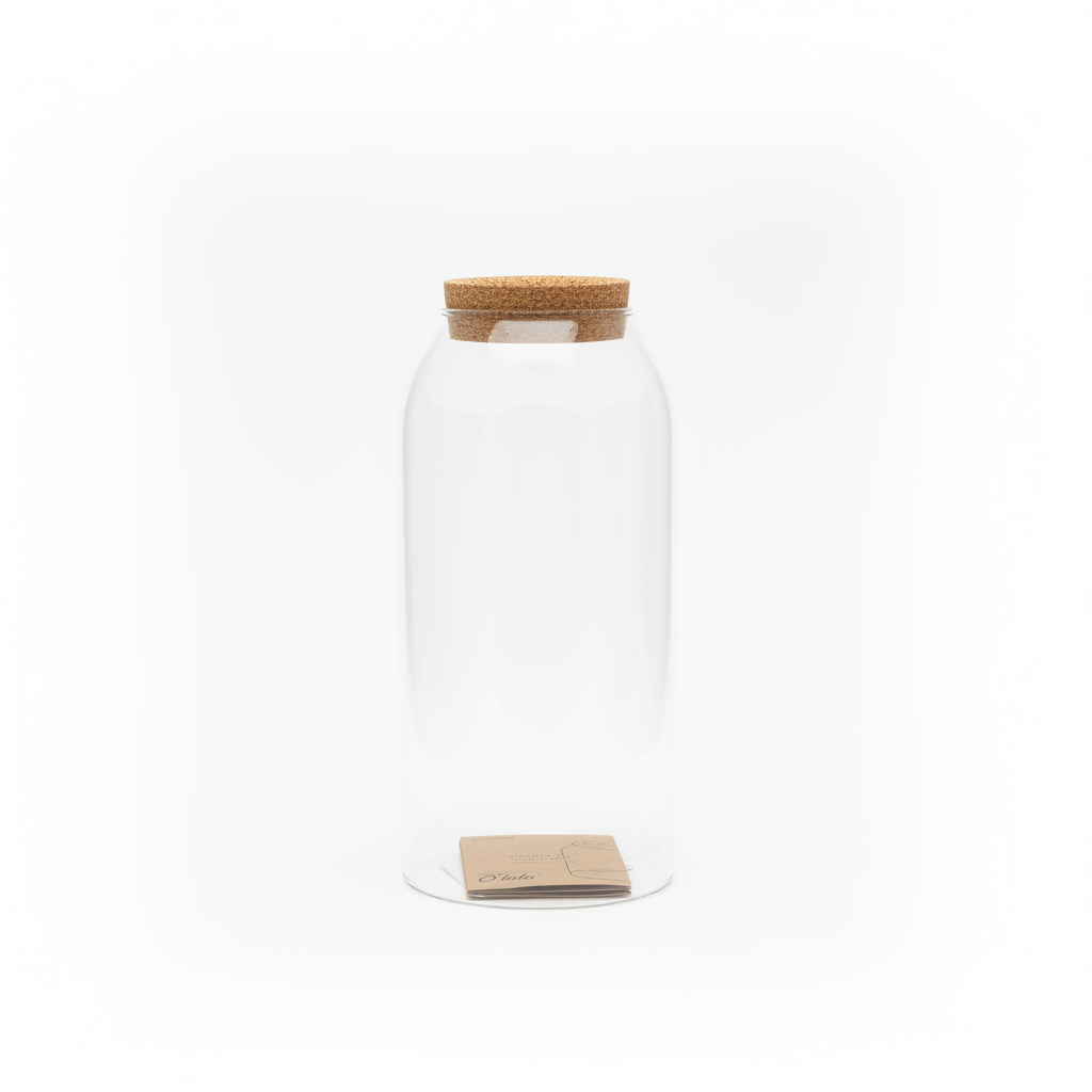 Shishe elegante qelqi me trup transparent dhe kapak tape të heqshëm, ideale për ruajtjen dhe servirjen e ujit apo pijeve të tjera në kuzhinë. Dizajni i lartë cilindrik sjell stil dhe funksionalitet në çdo tavolinë.