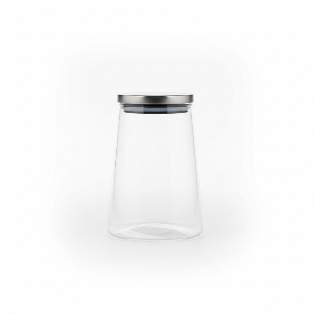 Kavanozi i qelqit për ruajtje ushqimi ofron zgjidhje praktike dhe elegante për organizimin e makaronave dhe produkteve të thata në kuzhinë. Dizajni i tejdukshëm dhe kapaku metalik me unazë mbyllëse e bëjnë ideal për banakun ose dollapin e kuzhinës.
