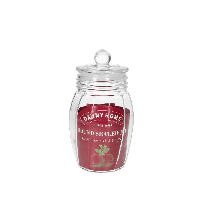 Kavanoz modern qelqi për organizimin dhe ruajtjen e ushqimeve të thata në kuzhinë.