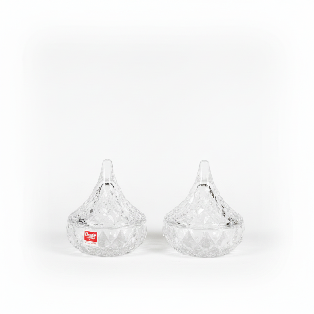 Kavanoz dekorativ prej qelqi të prerë, me kapak konik elegant, ideal për ruajtjen dhe ekspozimin e ëmbëlsirave ose aksesorëve të vegjël në çdo sipërfaqe tavoline.