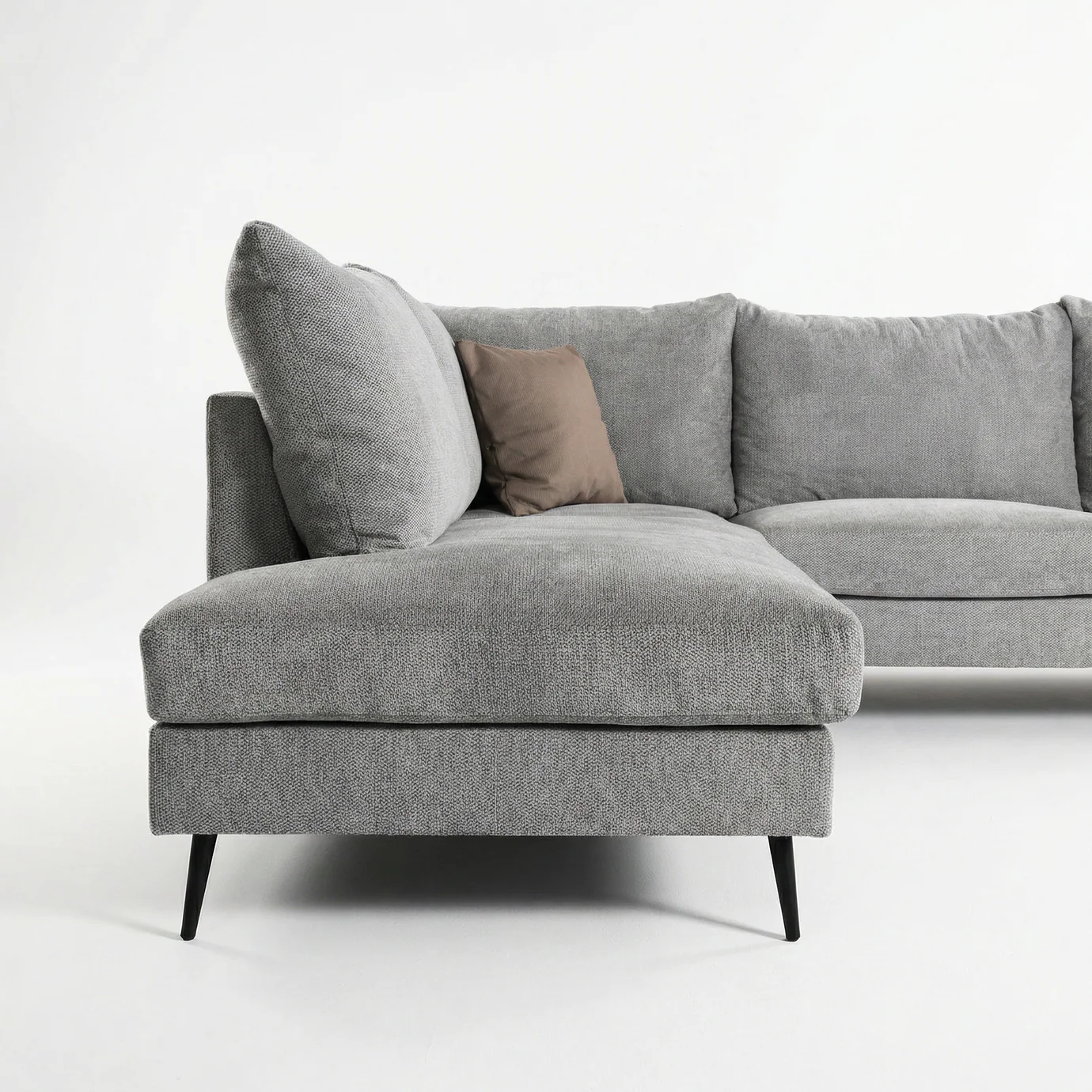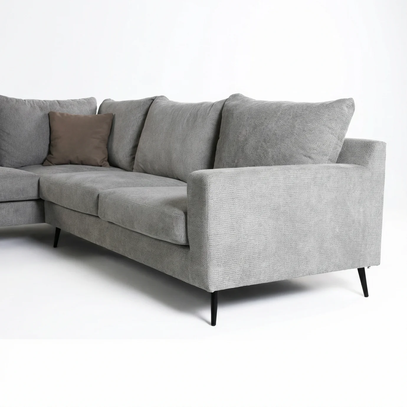 I veshur me stof cilësor në ngjyrë gri neutrale, ky kënd përshtatet lehtësisht me çdo stil interieri – nga modern dhe skandinav, deri te minimalist apo urban. Ulëset e gjera dhe jastëkët e butë ofrojnë rehati të lartë si për relaks, ashtu edhe për pritje miqsh.