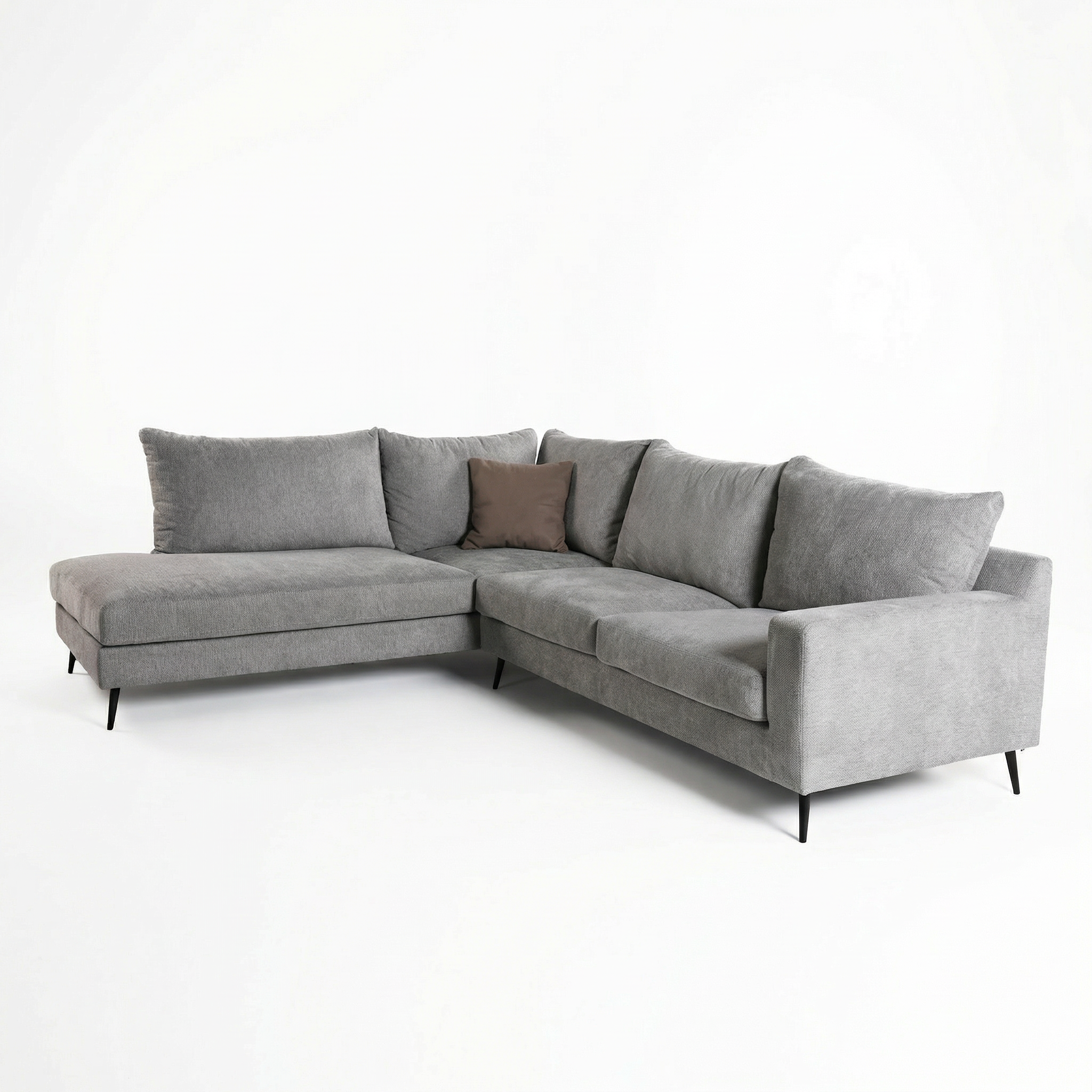I veshur me stof cilësor në ngjyrë gri neutrale, ky kënd përshtatet lehtësisht me çdo stil interieri – nga modern dhe skandinav, deri te minimalist apo urban. Ulëset e gjera dhe jastëkët e butë ofrojnë rehati të lartë si për relaks, ashtu edhe për pritje miqsh.