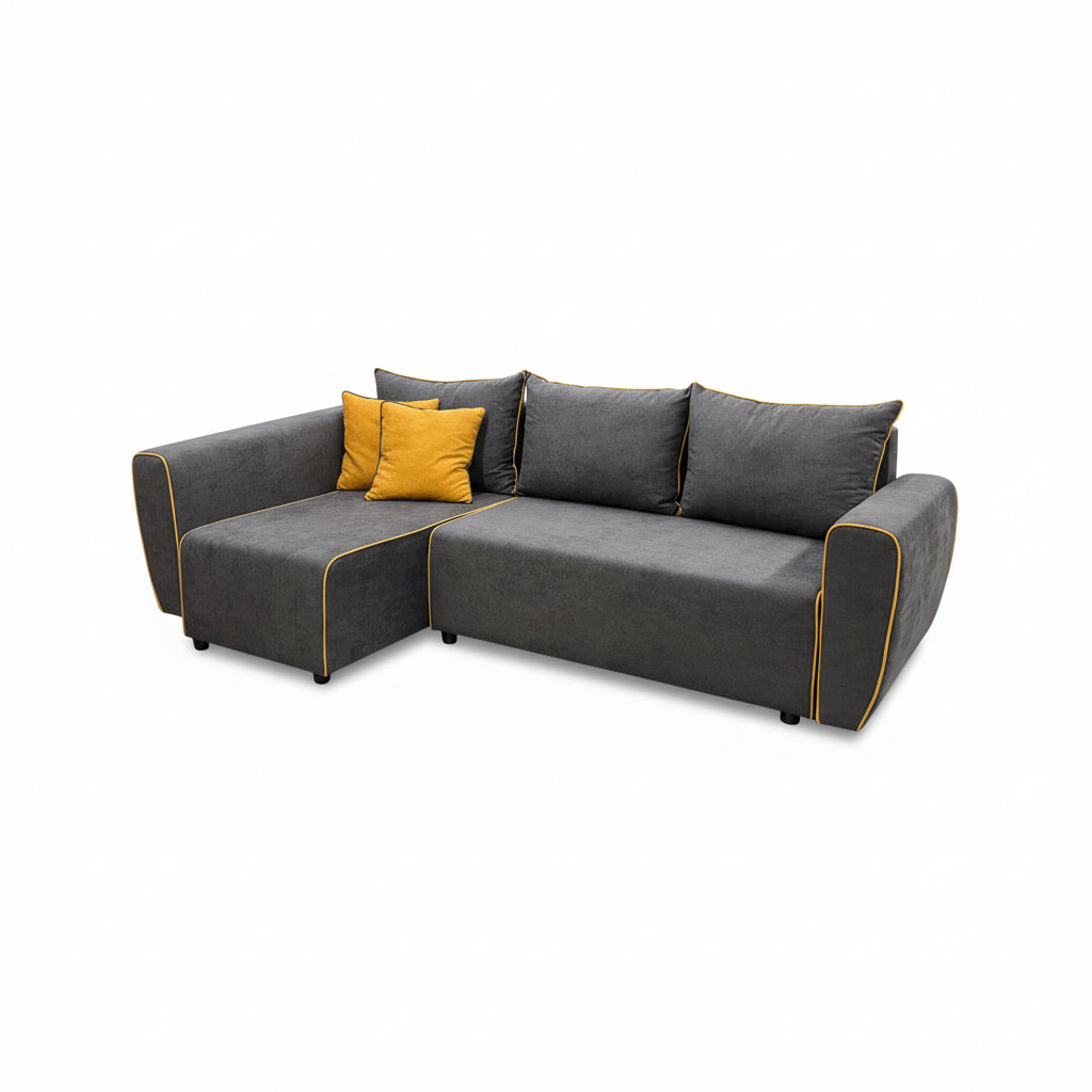 Detaje Kontrasti: Tubacioni (piping) në skajet e divanit thekson linjat e tij moderne, duke i dhënë një karakter më të fortë dekorit tuaj.
