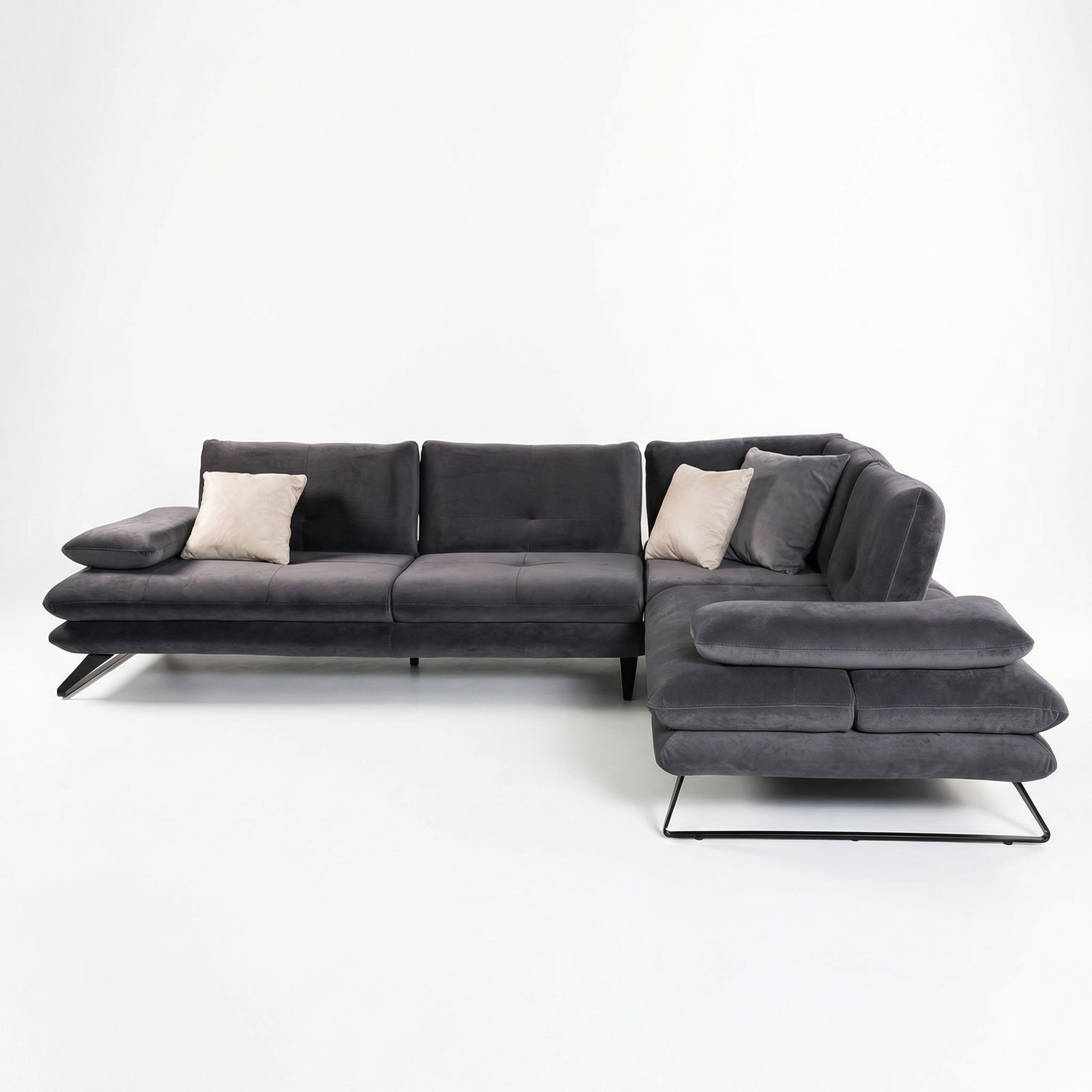 I veshur me Velvet cilësor në ngjyrë gri të errët, Oslo ofron një ndjesi luksi dhe ngrohtësie, ndërsa ulëset e thella dhe jastëkët e butë garantojnë rehati të jashtëzakonshme për relaks të përditshëm apo momente sociale.