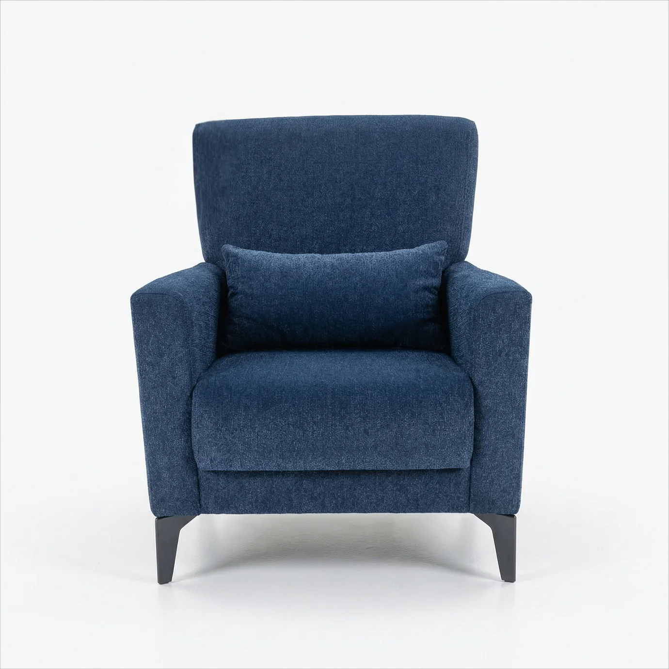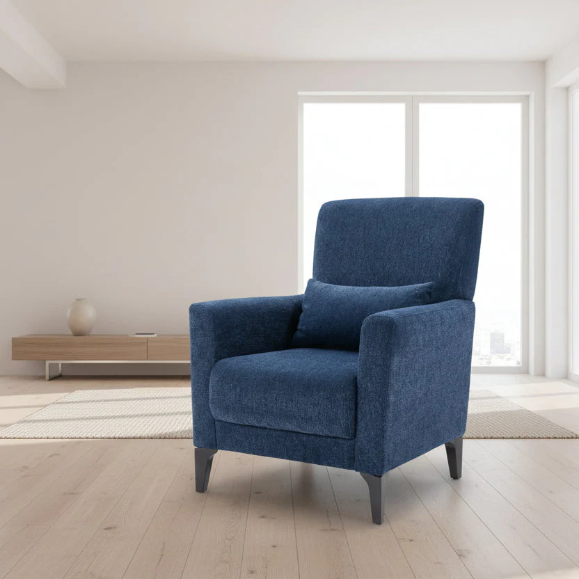 Dizajni i saj i pastër me linja moderne e bën atë të përshtatshme si për sallonin e ndenjes, ashtu edhe për dhomën e gjumit apo zyrën. Poltrona vjen e kompletuar me një jastëk mesi (lumbar) në të njëjtën nuancë, duke garantuar rehati shtesë për orë të gjata qëndrimi. Këmbët e larta në ngjyrë të zezë shtojnë një kontrast të këndshëm dhe lehtësojnë pastrimin e hapësirës poshtë saj.