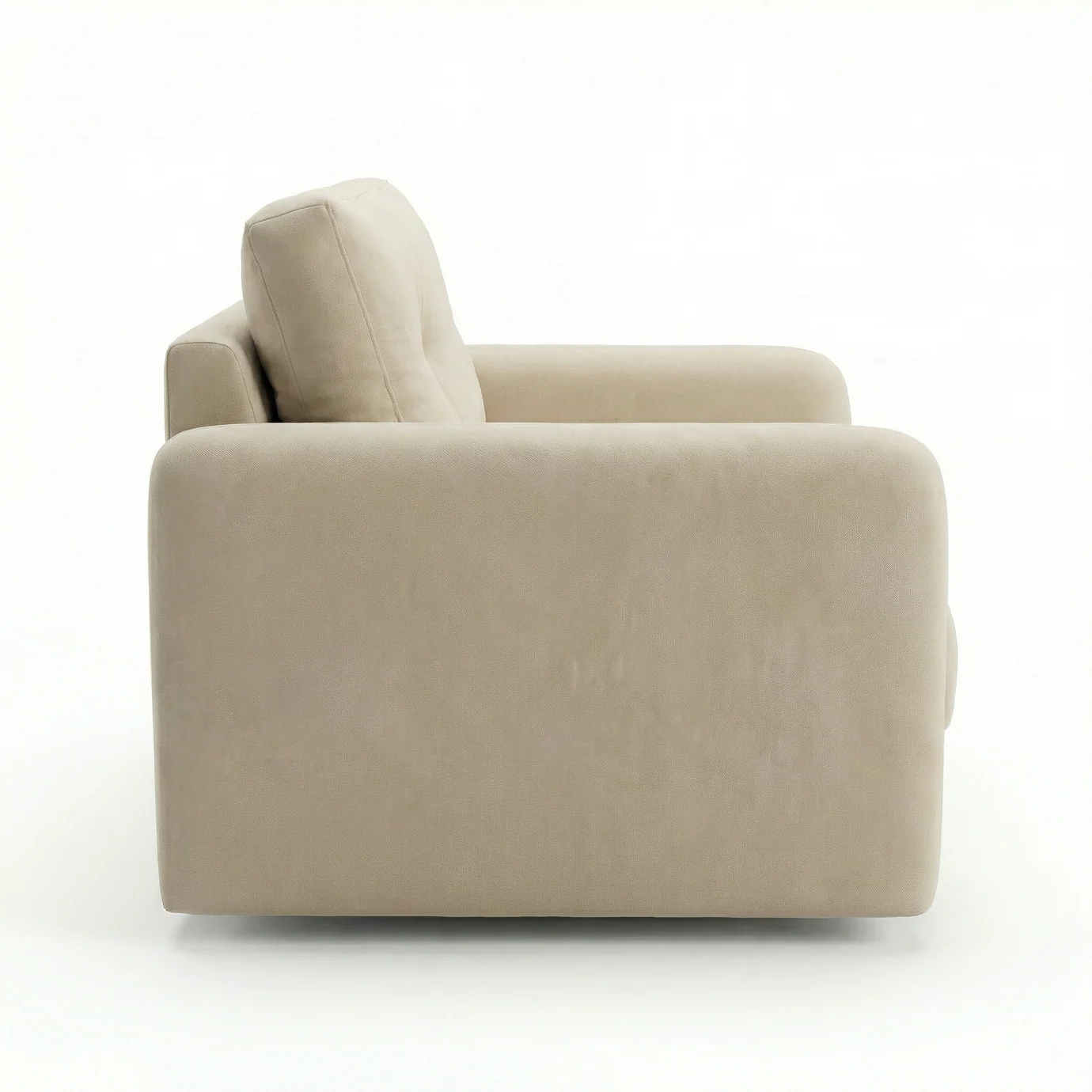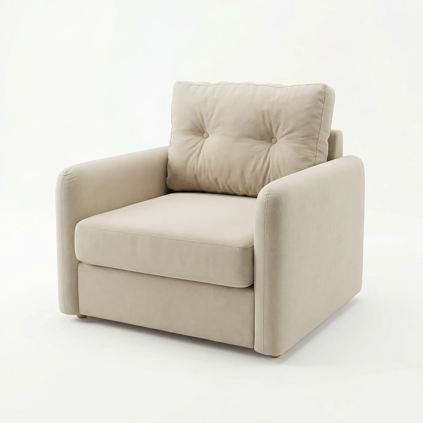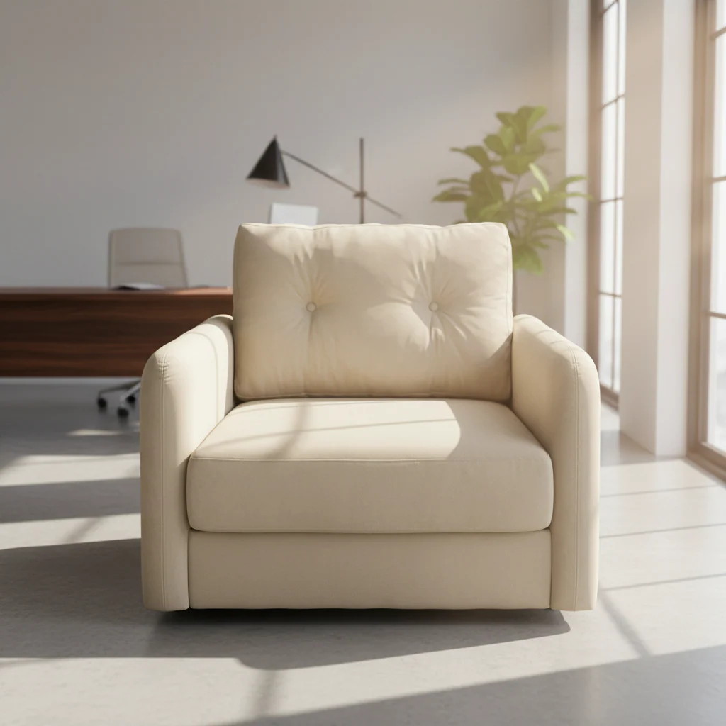 Dizajni i saj kompakt me krahë të drejtë dhe jastëku i shpinës me dy kopsa dekorative (button-tufted) krijojnë një pamje të kuruar që nuk e rëndon ambientin. Është zgjedhja ideale për të krijuar një kënd leximi të ndriçuar ose për të kompletuar një dhomë ndenjeje me tone toke.
