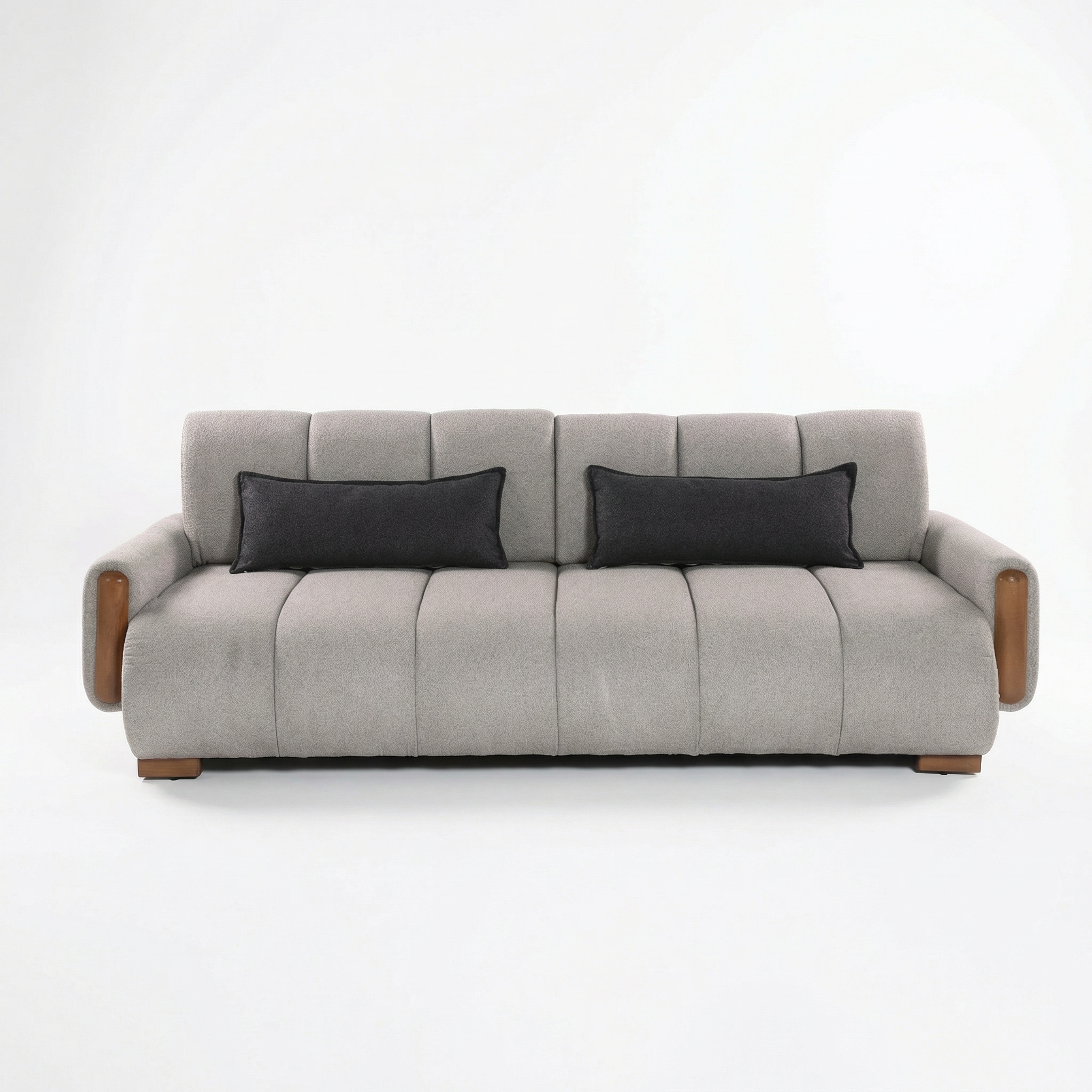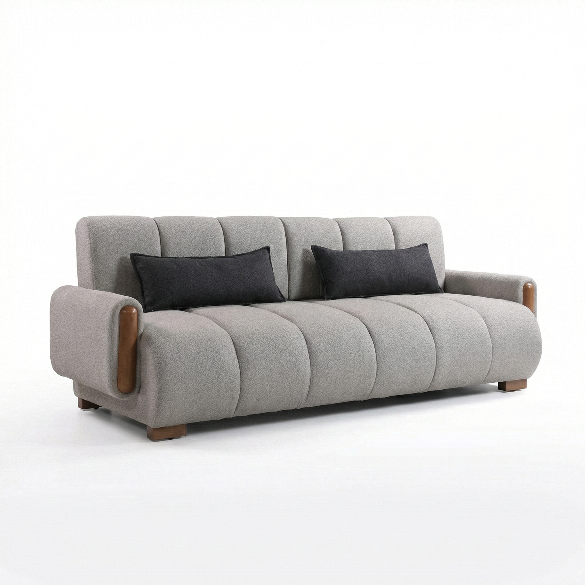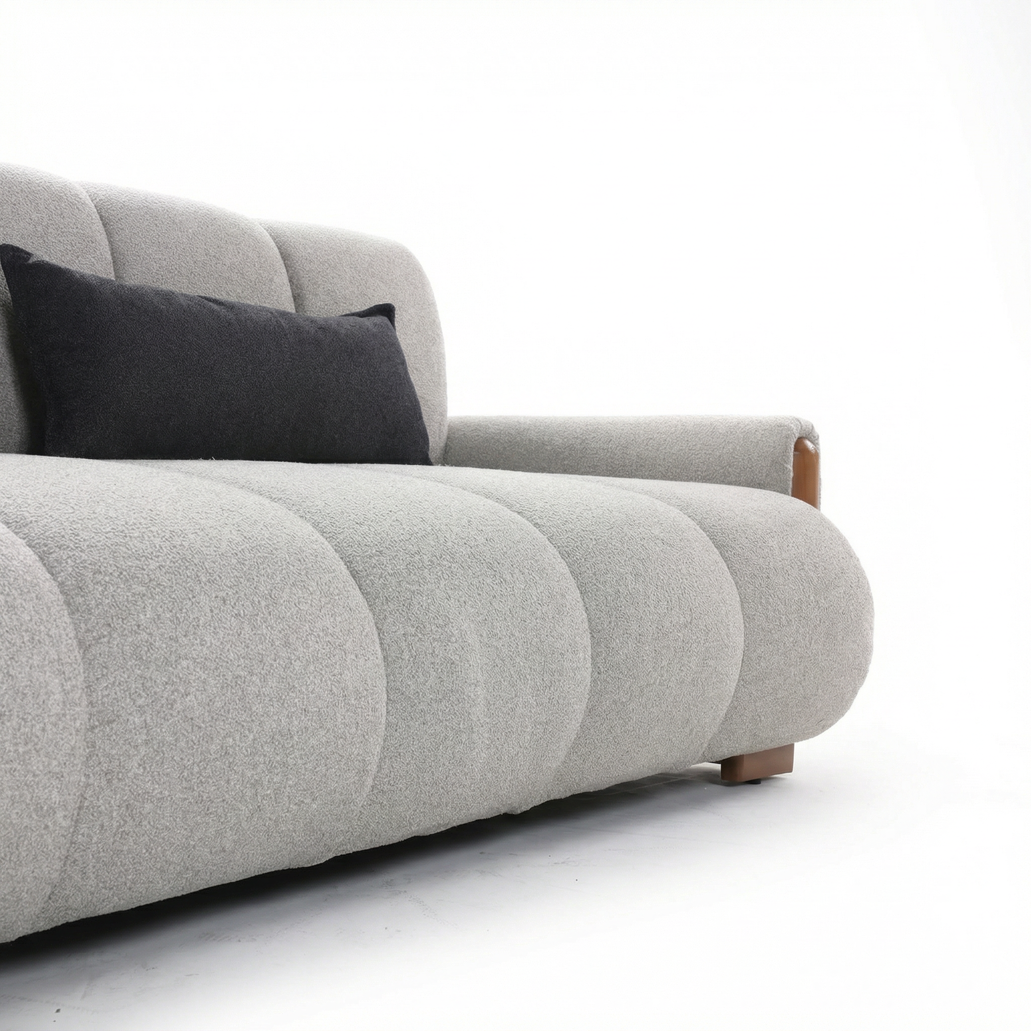 I veshur me stof cilësor në ngjyrë gri te lehte elegante dhe i kompletuar me detaje druri natyral në anë, Velura sjell një ndjesi luksi diskret dhe harmonizohet lehtësisht me interiere moderne, skandinave apo japandi.