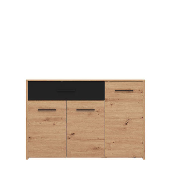 Komo Verda 4K kombinon ngrohtësinë natyrale të drurit me elegancën moderne të së zezës, duke krijuar një mobilie me karakter të fortë dhe stil bashkëkohor. Dizajni me katër sirtarë ofron hapësirë të bollshme për organizimin e rrobave dhe sendeve personale, ideale për dhomën e gjumit apo ambiente të tjera të shtëpisë.