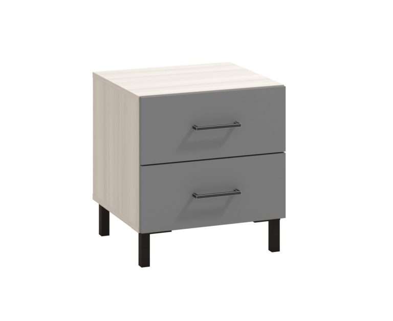 Komodina Novel karakterizohet nga një kombinim i guximshëm i dekorit me ngjyra të kundërta, i cili kontribuon në sofistikimin dhe elegancën e të gjithë ambientit. Kombinimi i dekorit të hirit me surfside dhe ngjyrës gri grafit me këmbët e zeza përfaqëson një nivel të ri të guximit estetik që karakterizon shtëpitë më moderne, ndërsa dorezat metalike sjellin seriozitet shtesë në dizajnin e këtij sistemi elementesh. Hapësira e dobishme e komodinës përbëhet nga dy sirtarë praktik. Është pjesë e një sistemi elementësh për arredimin e dhomës së gjumit me një formë të thjeshtë projektimi.