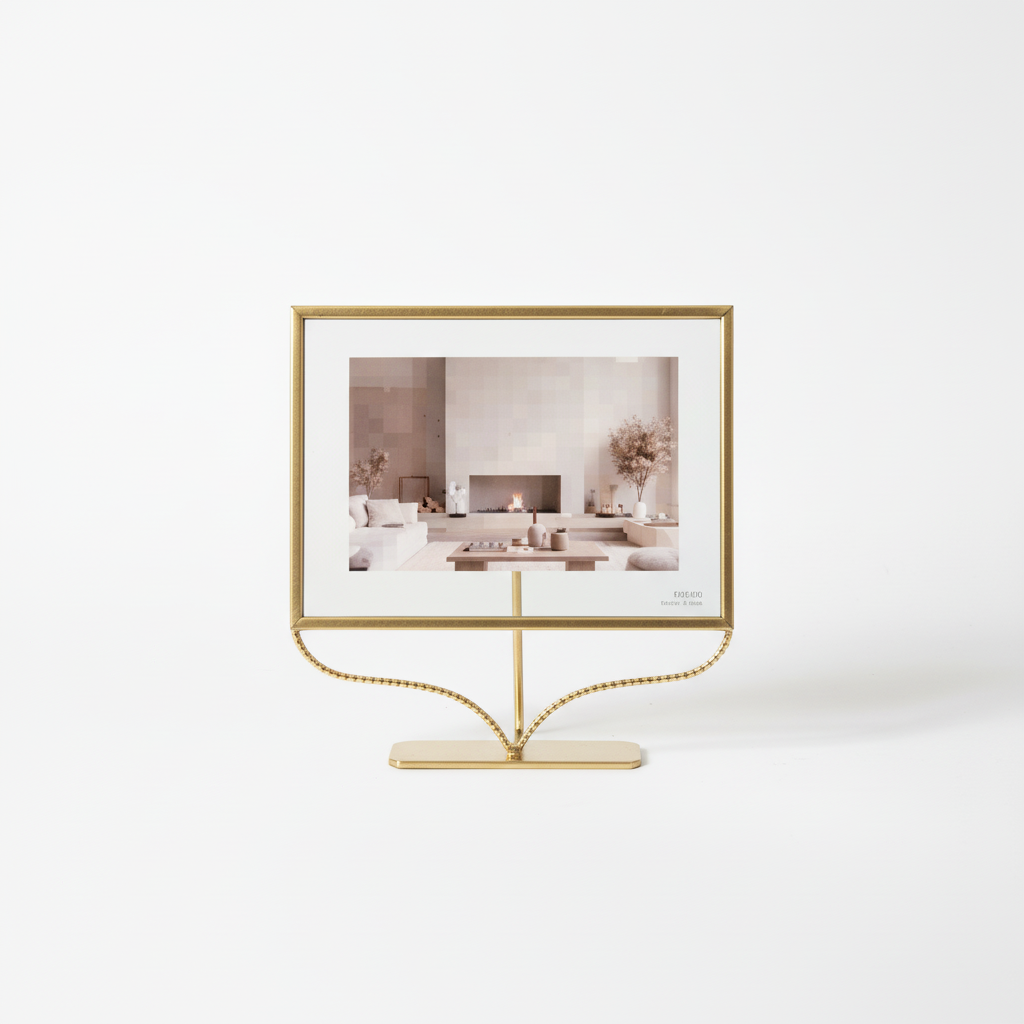 Kjo kornizë tavoline metalike në ngjyrë ari ekspozon bukur fotot tuaja të preferuara dhe shton një prekje minimaliste dekorative në çdo ambient.