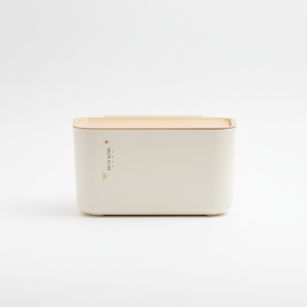 Kjo kuti rektangulare organizimi me ngjyrë të çelët krem/bojë qumështi ndihmon të mbani të rregullta sendet në tavolinë, banjo apo kuzhinë. Dizajni minimalist dhe sipërfaqja plastike e lëmuar përshtaten lehtë me çdo ambient modern.