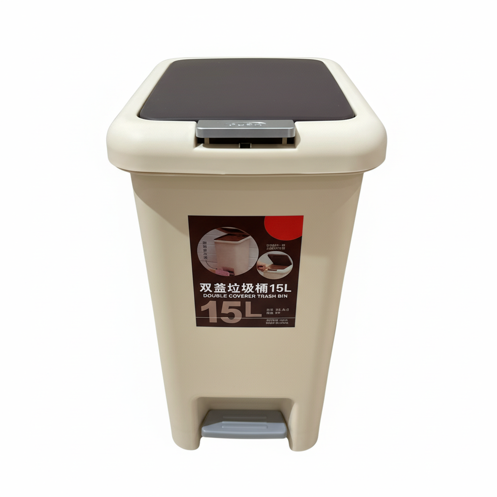 Koshi me kapak të dyfishtë ofron kapacitet praktik prej 15L dhe është ideal për përdorim në kuzhinë, banjo apo zyrë. Mekanizmi me pedal pa duar siguron hapje higjienike dhe të lehtë, ndërsa baza drejtkëndore ndihmon në kursimin e hapësirës. Trupi i lehtë plastik me ngjyrë të çelët dhe kapaku i errët krijojnë një pamje moderne që kombinohet lehtësisht me çdo ambient. Materiali plastik është i lehtë për t’u pastruar dhe i qëndrueshëm për përdorim të përditshëm.