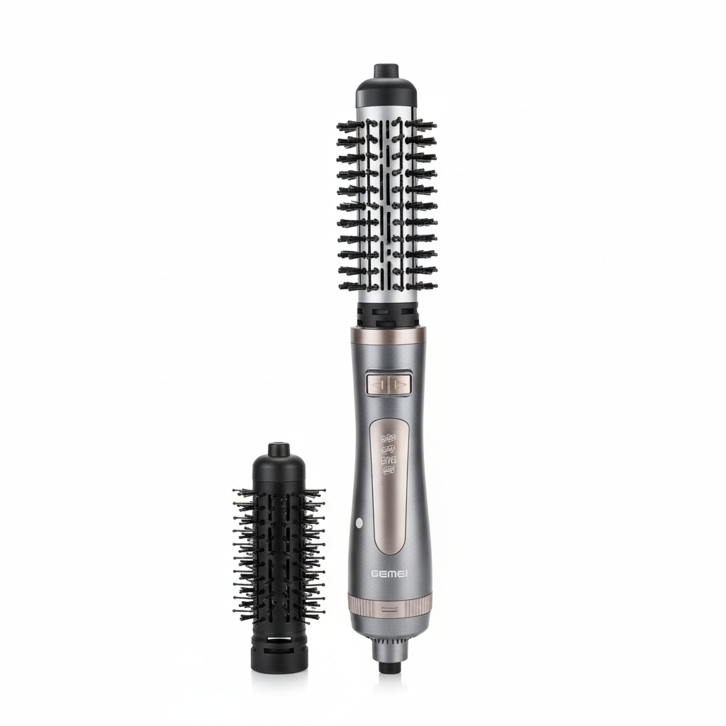 Furça elektrike Gemei GM-4830 me ajër të nxehtë është e dizajnuar për të stiluar dhe zbutur flokët lehtësisht, direkt nga tharja tek modeli i dëshiruar. Me koka të rrumbullakëta zëvendësuese, ajo ofron fleksibilitet për stile të ndryshme flokësh.