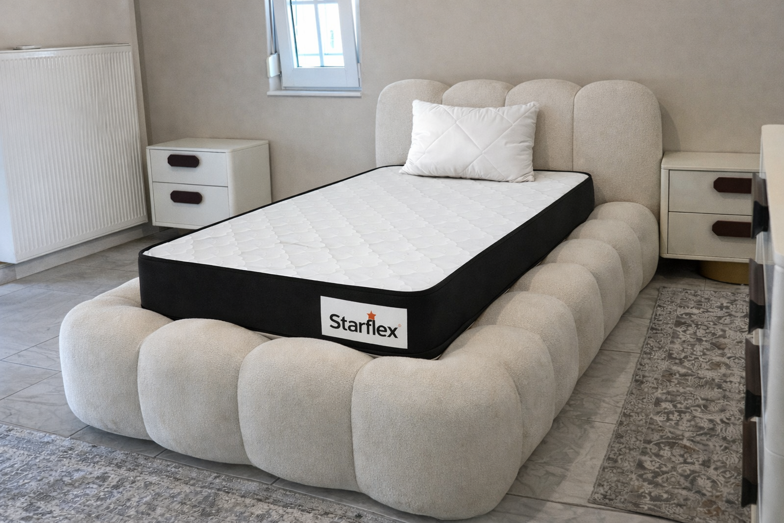 Krevat Aurora - Ngjyre bezhë e hapur / Dyshek Starflex 19x90x190cm / Jastëk Komfort 40x60 cm
