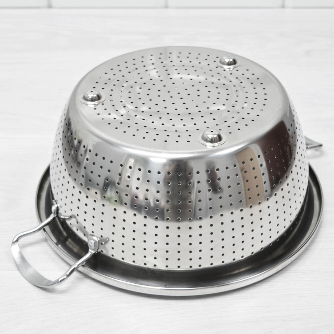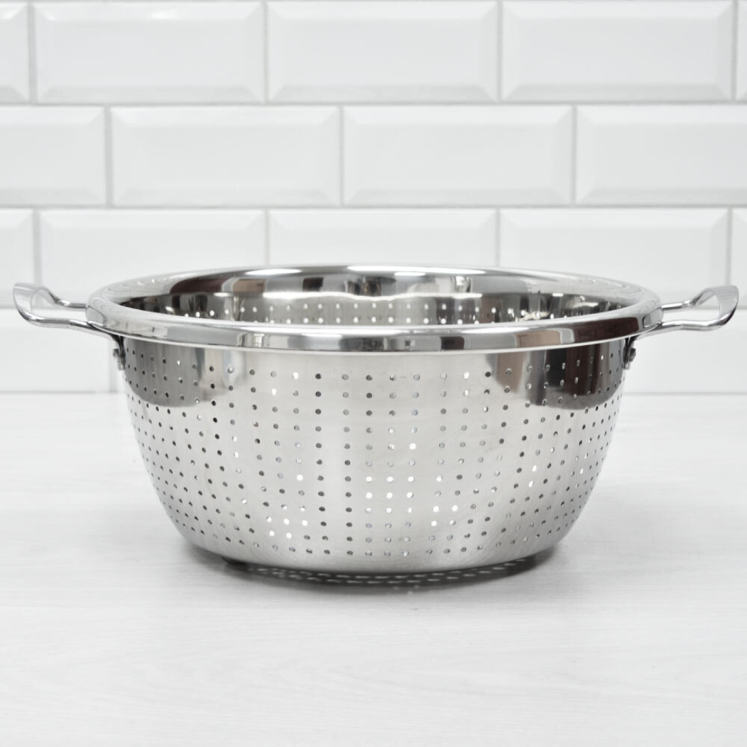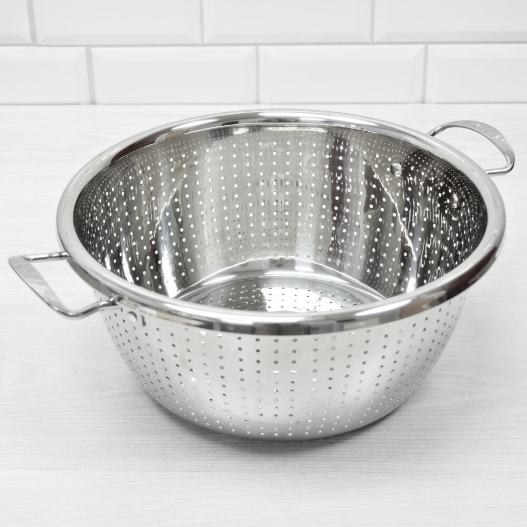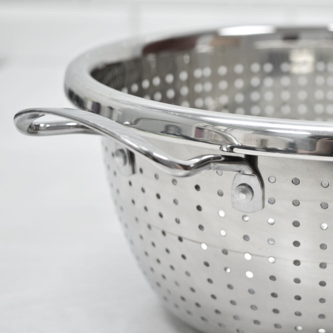 Makarona të sapoziera, lakra brukseli ose një grusht luleshtrydhe, çfarëdo që jeni duke përgatitur, kullojini ose lajini në këtë kullesë inoksi. Kjo kullesë kuzhine me rrjetë të imët kullon lehtësisht të gjithë ujin nga ushqimi juaj.
