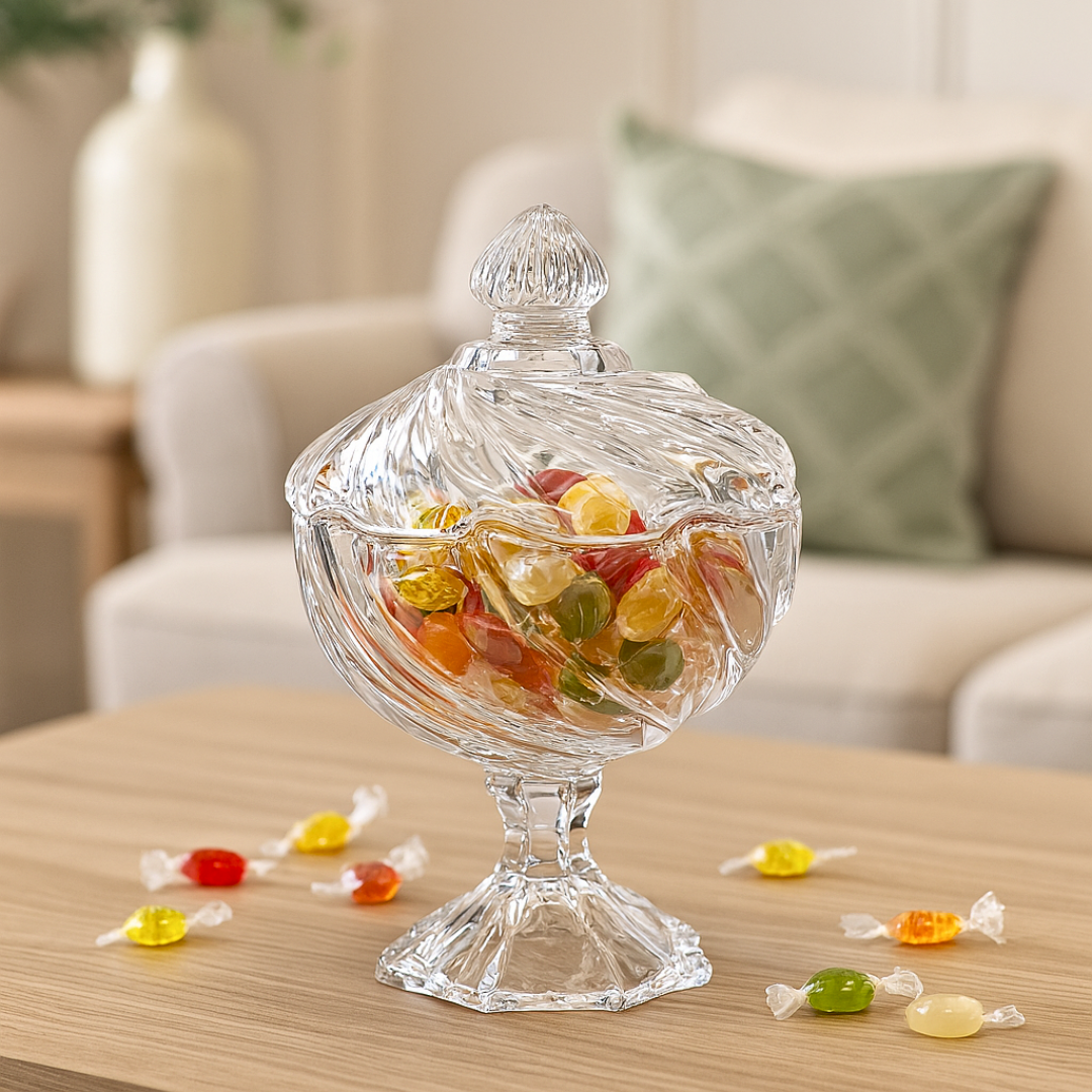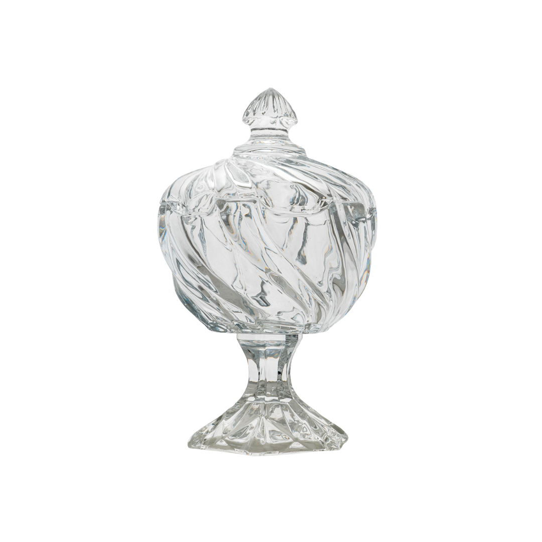 E krijuar nga qelq i shkëlqyeshëm transparent cilësor, Kupe Qerasje Lyra kap dhe reflekton dritën për efekt mahnitës, perfekt në tavolinë. Dizajni klasik me gëdhendje spirale.