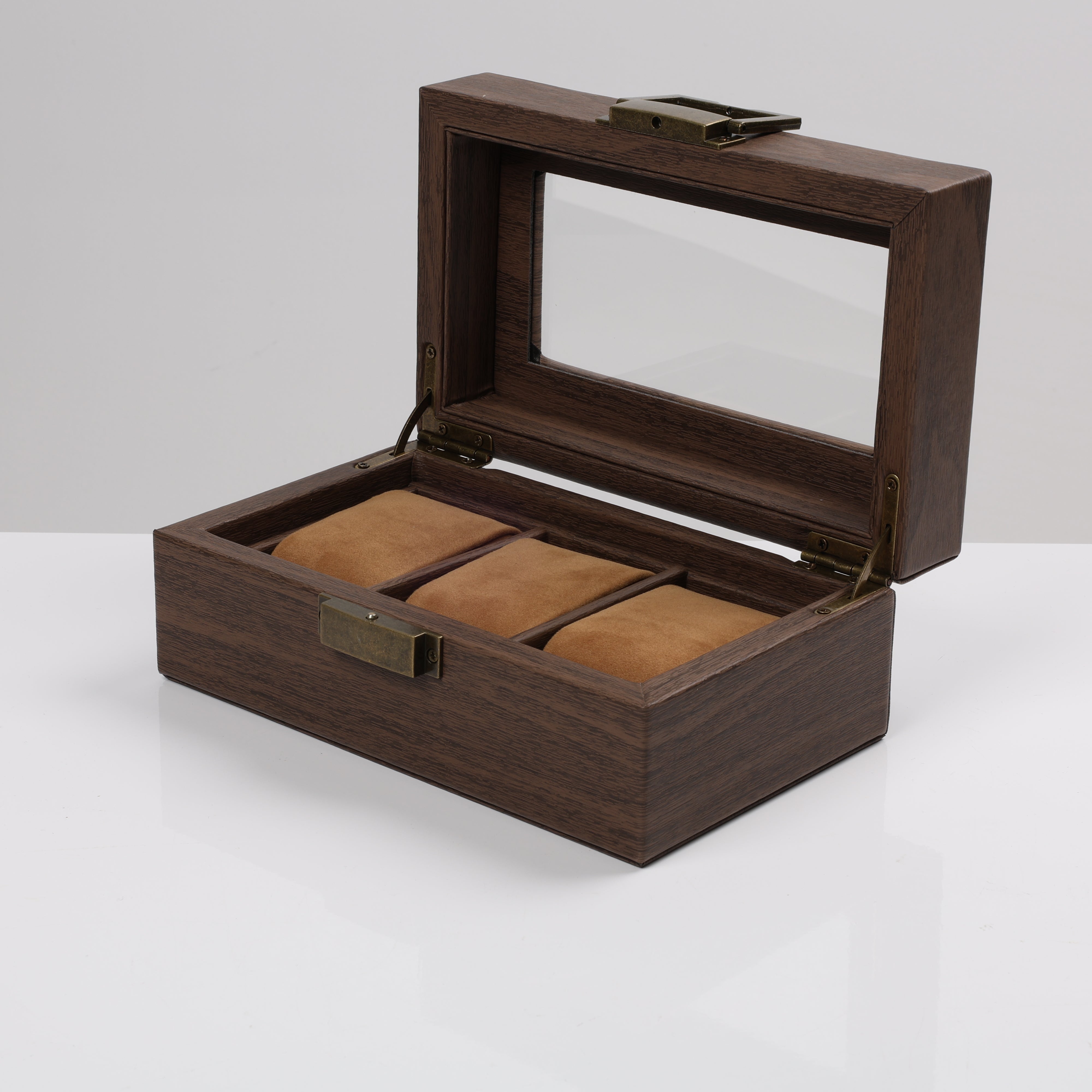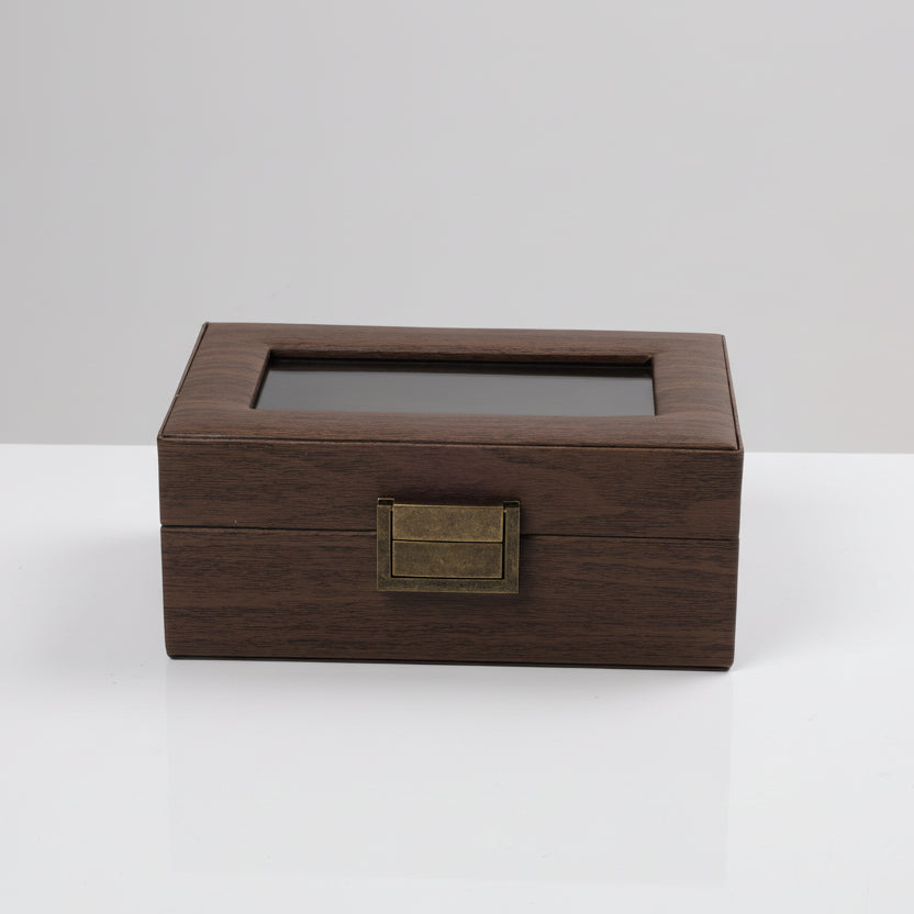 Kjo kuti druri për bizhuteri kombinon elegancën klasike me funksionalitetin modern. E punuar me pamje druri natyral dhe e pajisur me kapak transparent xhami, ajo ju lejon të shihni përmbajtjen me një shikim, duke e bërë organizimin më të lehtë dhe më estetik.