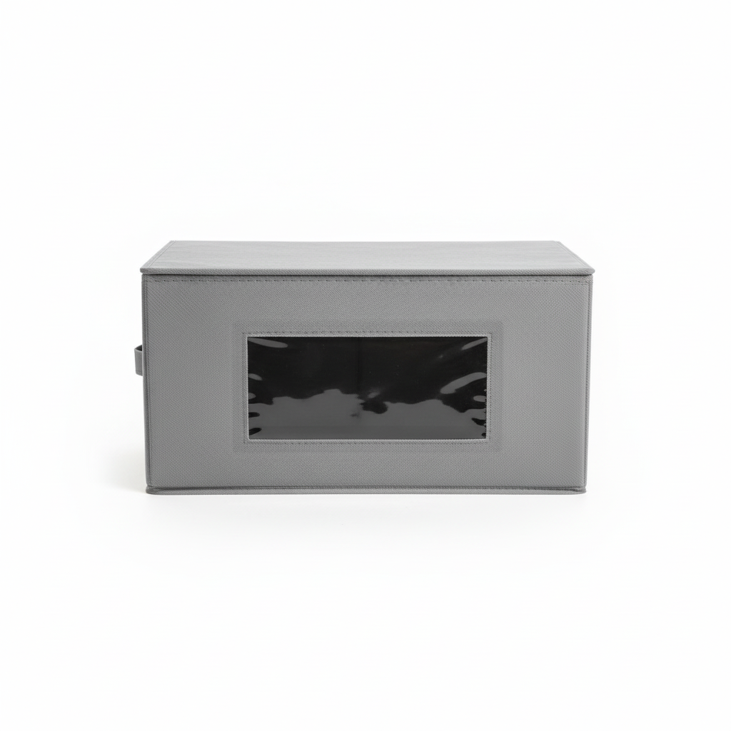 Kjo kuti organizimi është zgjidhje praktike për ruajtjen e rrobave dhe aksesorëve, me dizajn elegant gri që përshtatet lehtë me çdo hapësirë. Struktura e palosshme dhe dritarja transparente e bëjnë përdorimin të thjeshtë dhe funksional.